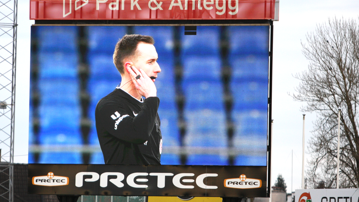 Det skulle bare ta 18 minutter før før dommerne måtte ta i bruk den nye teknologien. Bodø/Glimt tar tilsynelatende ledelsen etter et flott skudd. Det viser seg at dommeren hadde oversett et frispark til hjemmelaget, og målet ble etter et par minutter annulert.