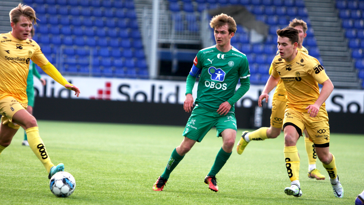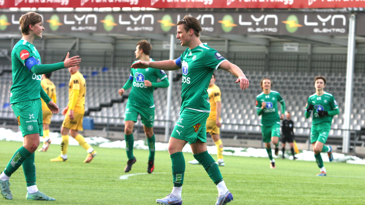 Drøye ti minutter før pausen kunne ingen stoppe hjemmelaget. Olve Stenersen får tid og rom til å trille ballen i nettet bak Glimt-keeperen. To minutter senere øker Oskar Stenberg Øien til 2-0 på vakkert vis.