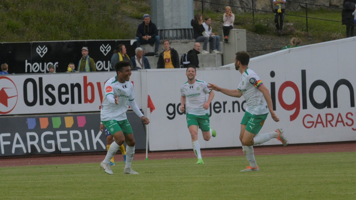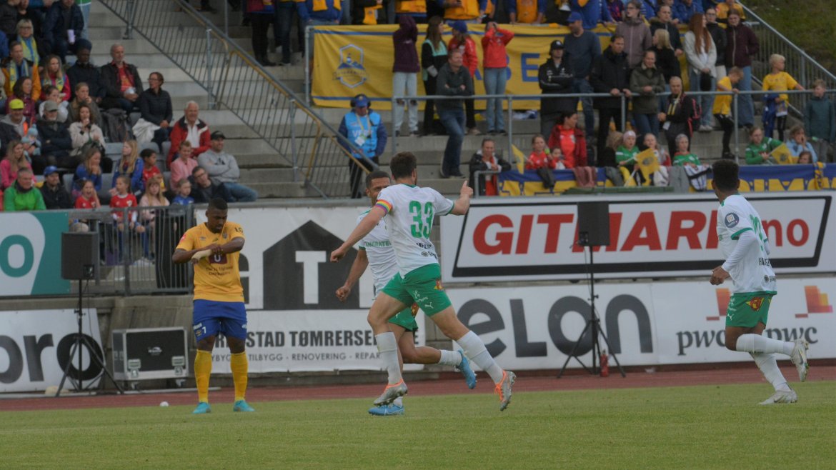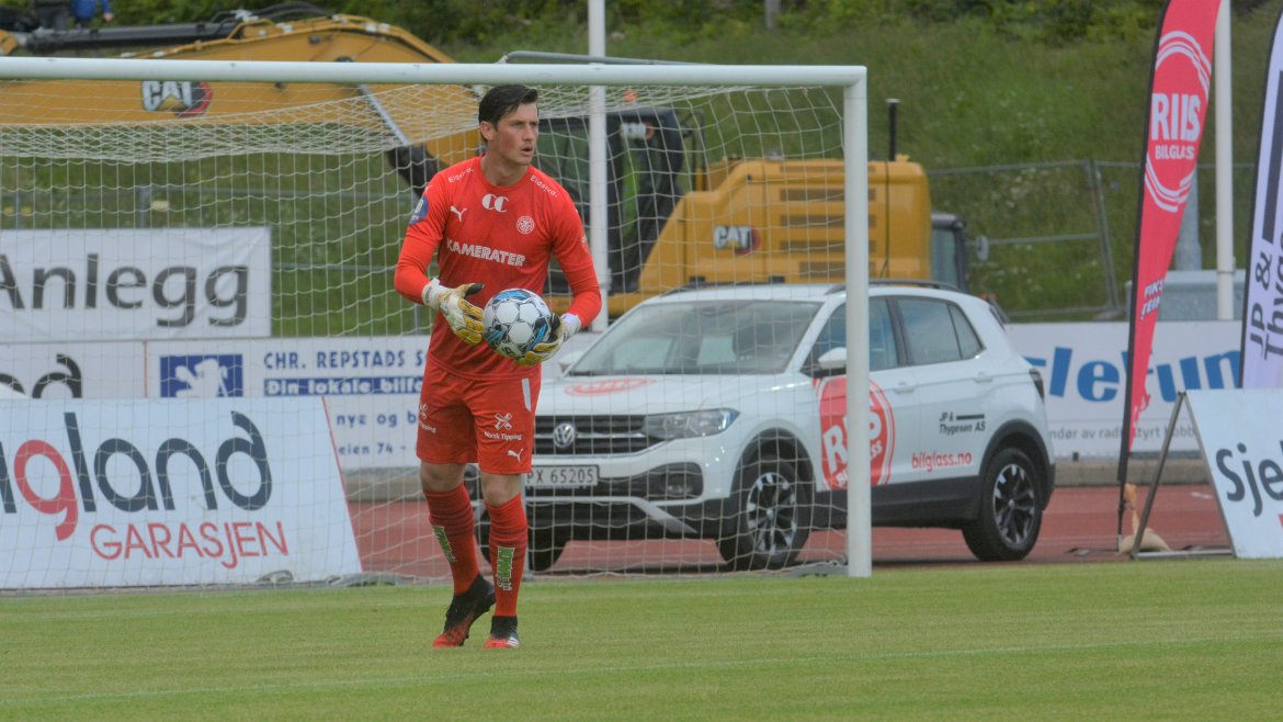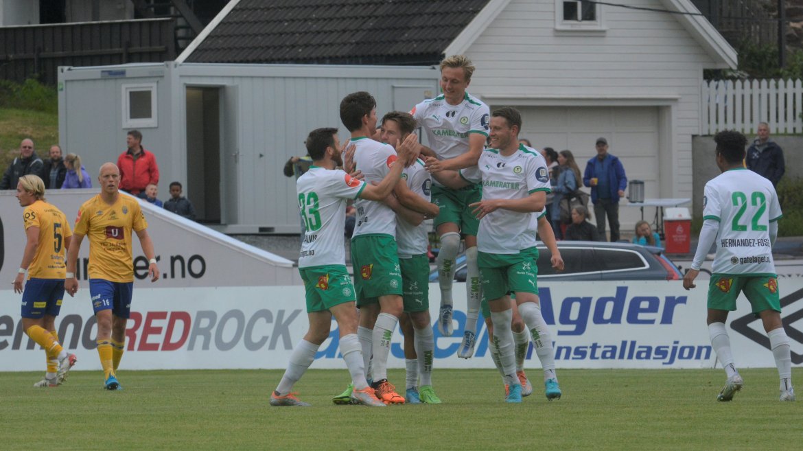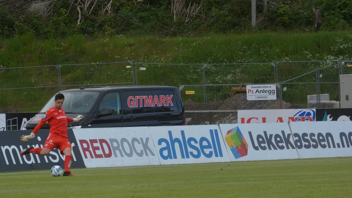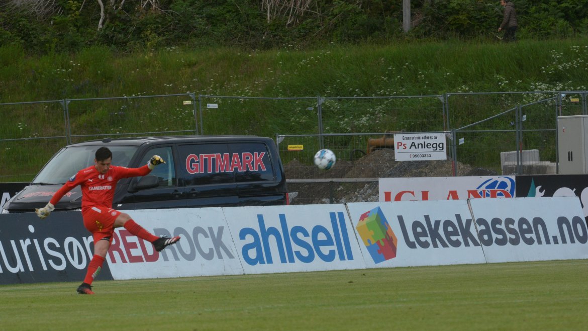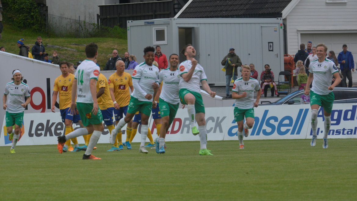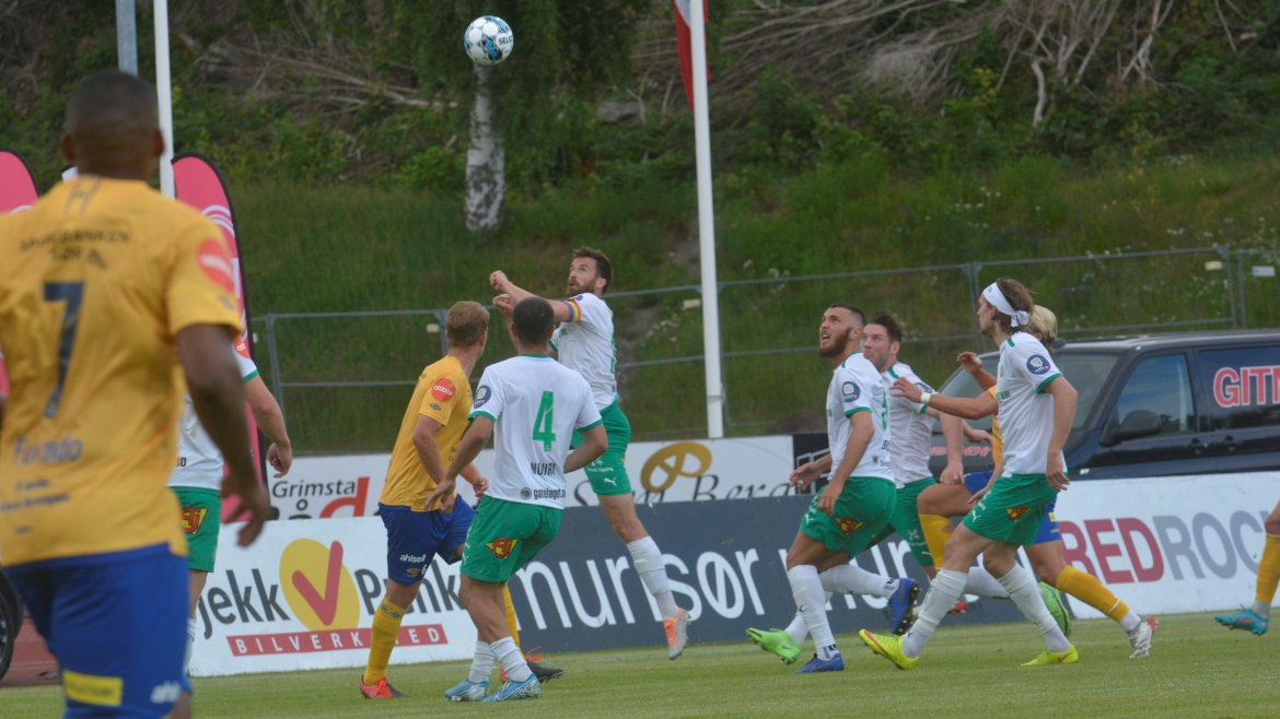 Aleksander Melgalvis har også til vane å finne nettmaskene i Grimstad. Det var tilfelle også denne søndagskvelden. Og kanskje det flotteste han har scoret på gressbanen?
