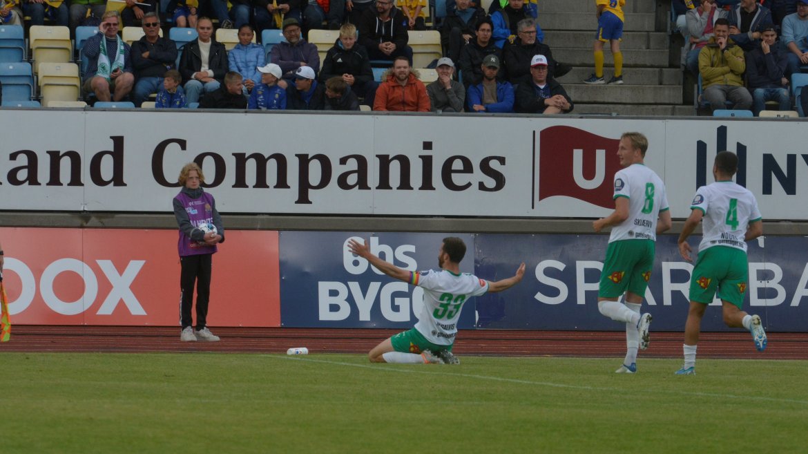 VIDEO/BILDEGALLERI: Aleksander Melgalvis feirer målet som ble avgjørende for at de tre poengene ble med hjem til Hamar: Herrelaget Video Bildegalleri
