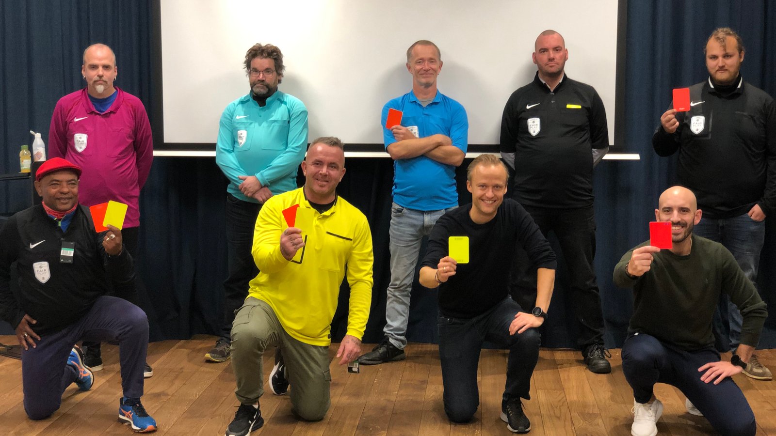 Åtte lærevillige spillere fra Lillestrøm og HamKams Gatelag møtte opp på Scandic Hotell Lillestrøm for å delta på klubbdommerkurs i regi av Fotballstiftelsen. På bordene lå allerede dommerfløyte, gule og røde kort klare til deltakerne.