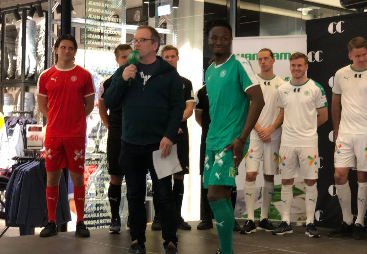 Dagens konferansier. Remo Martinsen sørget for at smilehullene til de fremmøtte fikk strekke på seg opptil flere ganger med sine rappe replikker. Han startet showet med å introdusere det han omtalte som synlige fifa-nerder, Jørgen Fallet Brobakken og Sindre Løseth som ble kjent som våre nye eSports-spillere i går (egen sak). Etter dette kom spillerne i tur og orden før lederne til slutt kastet glans over årets kick off.