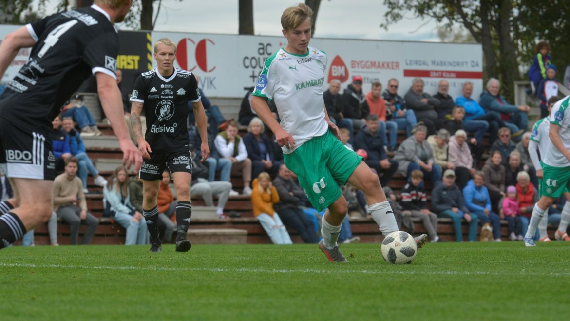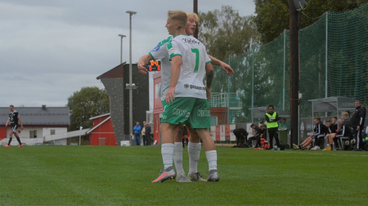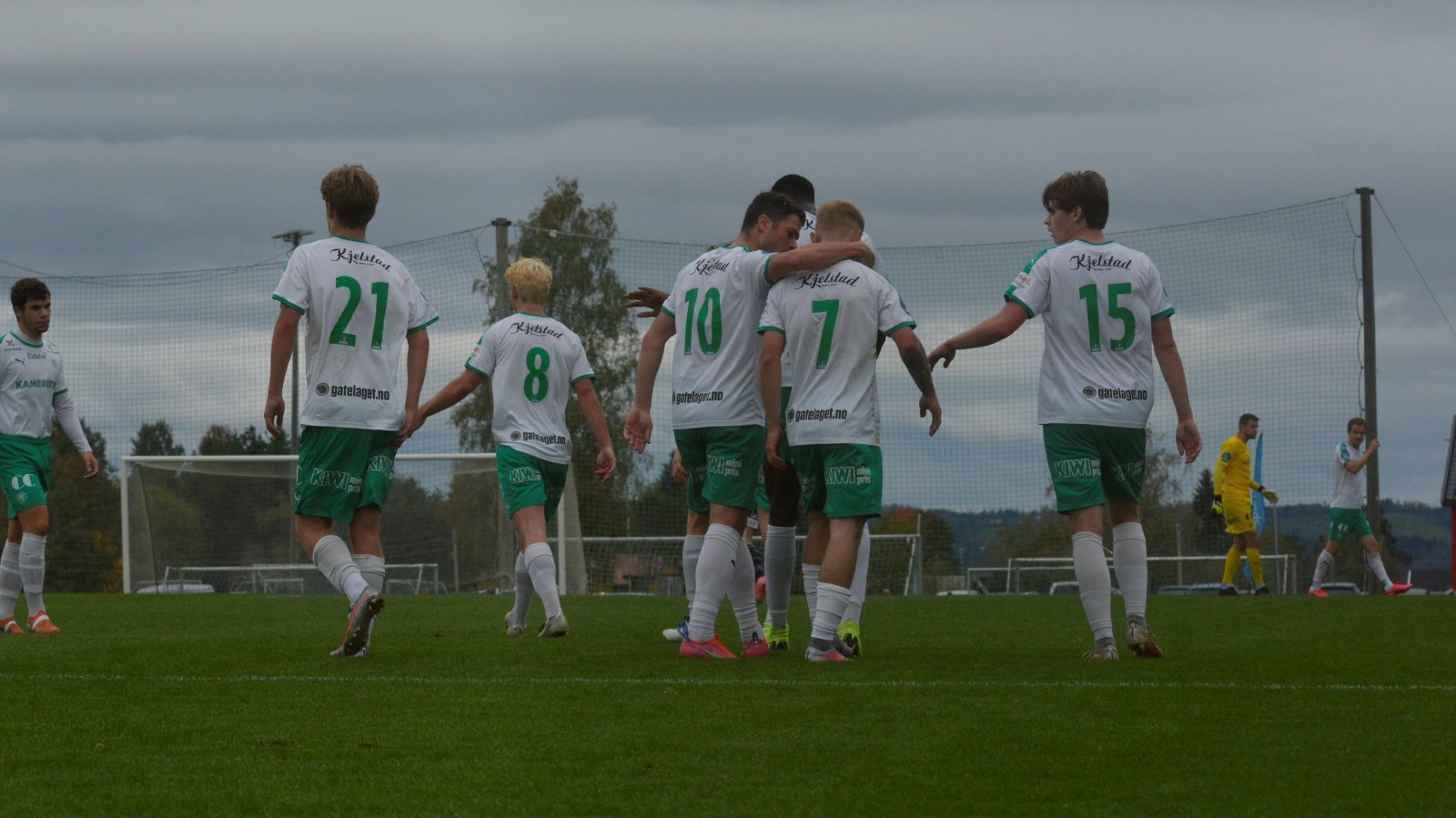 HamKam-rekruttene tok ledelsen etter tjue minutter etter at Eduards Daskevics benytter seg av farten sin på venstresiden. 19-åringen forsøker å finne Albert Berisha inne i feltet med et hardt innlegg langs bakken. Der kommer en uheldig Kolbu-forsvarer og sklir den inn i eget nett.