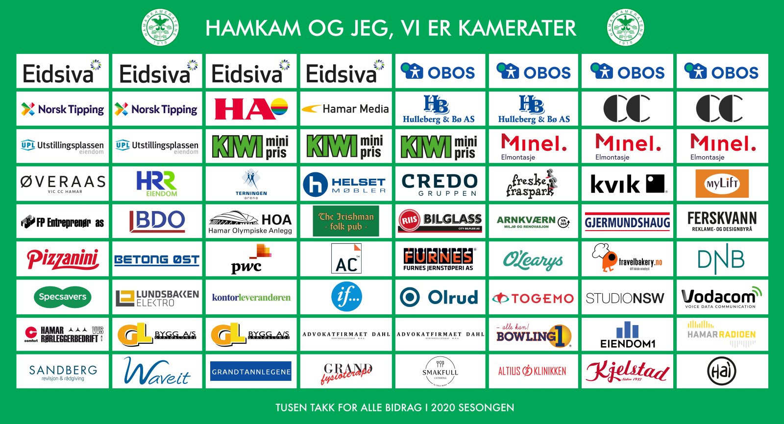 Vi i HamKam Fotball er ekstremt takknemlige for alle bidrag fra alle disse bedriftene.
