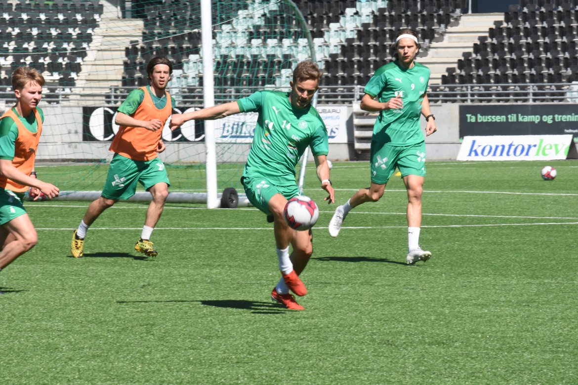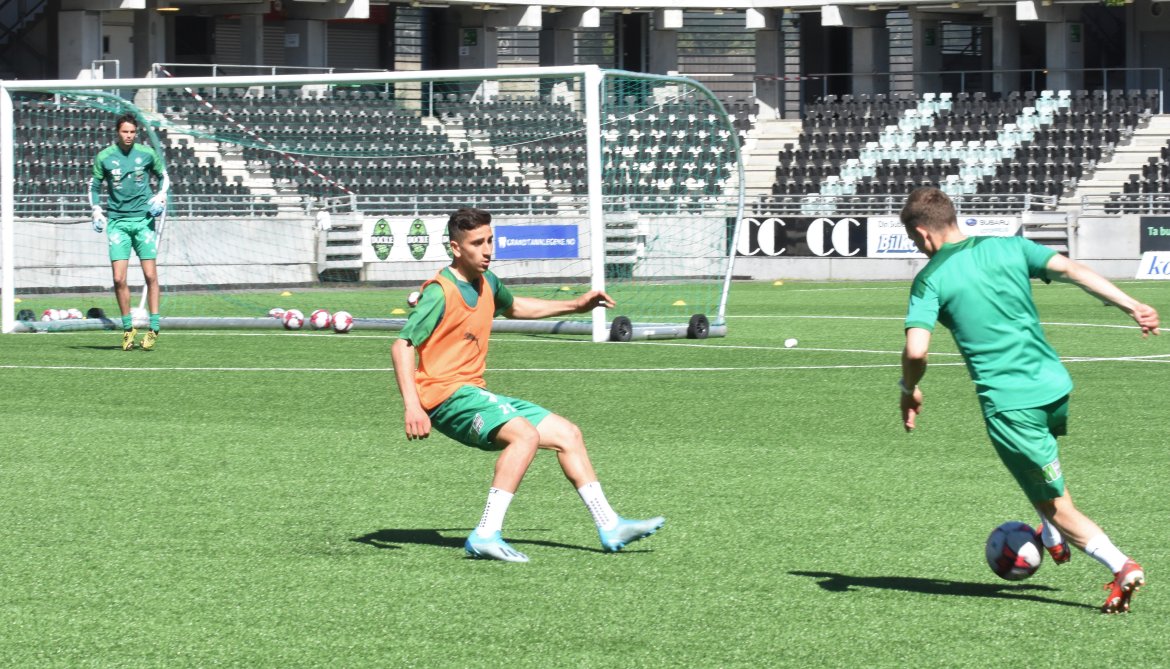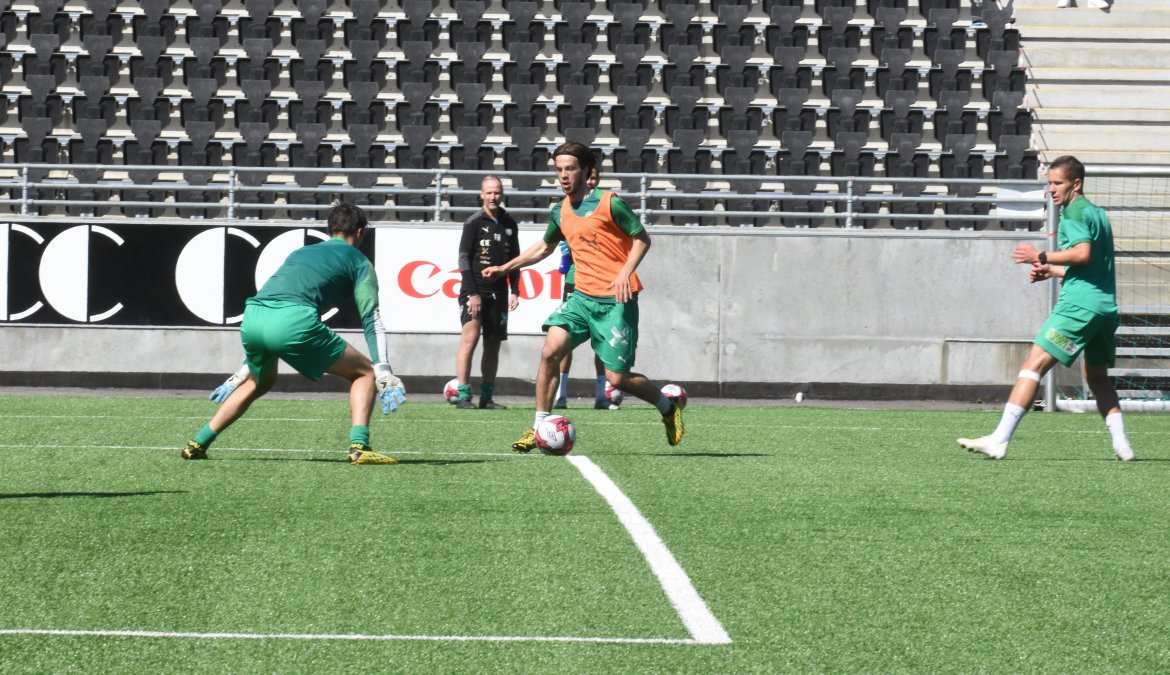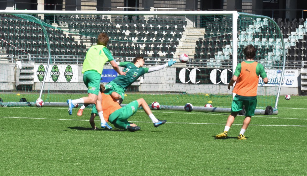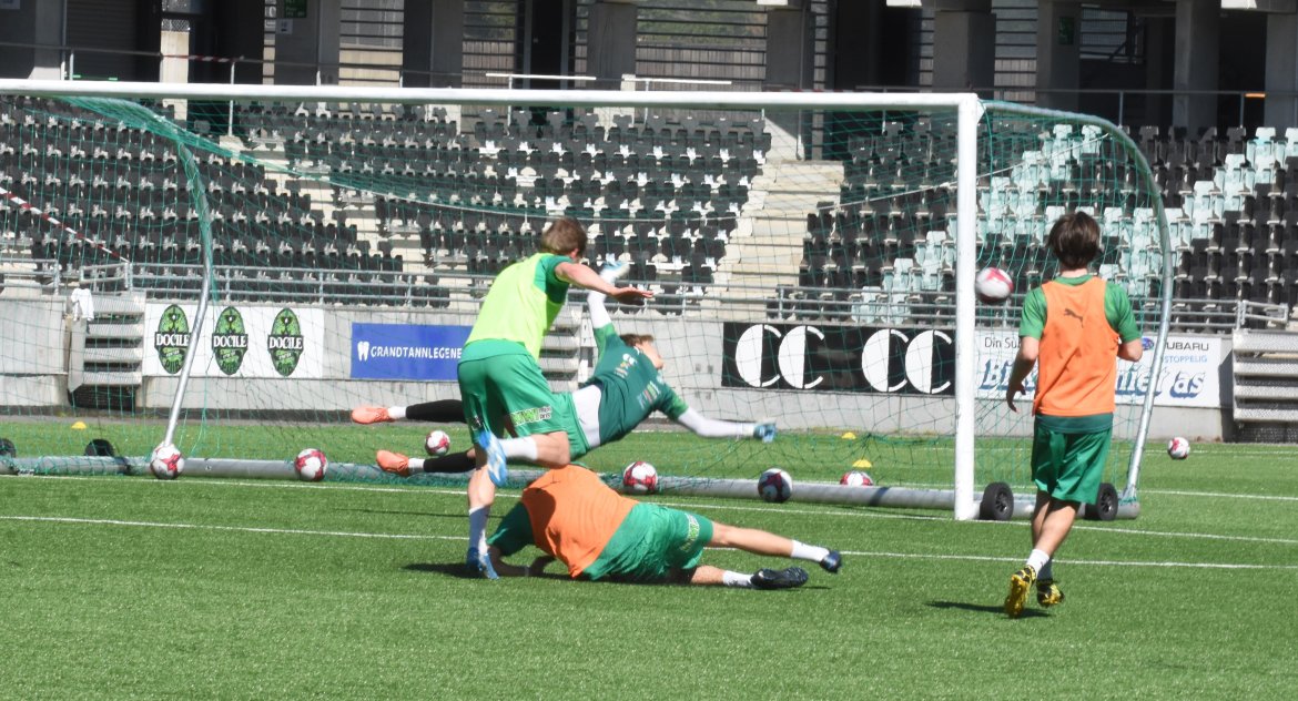 BILDEGALLERI: Kristian Strande sendte ungguttene hjem med triumf etter dagens skuddøvelse. Det sørget for god steming for de med oransje vester. Se bildene fra fredagens økt: Herrelaget Bildegalleri