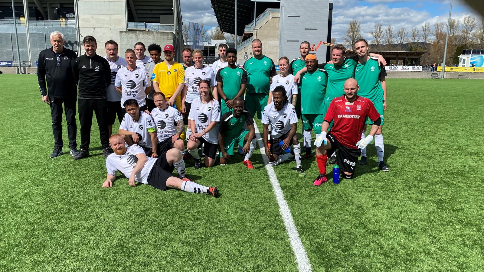 Kl 12.45 får keeper-Matias besøk av familie under oppvarmingen, uten at det påvirker fokuset nevneverdig.