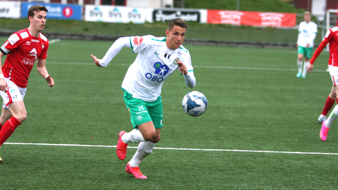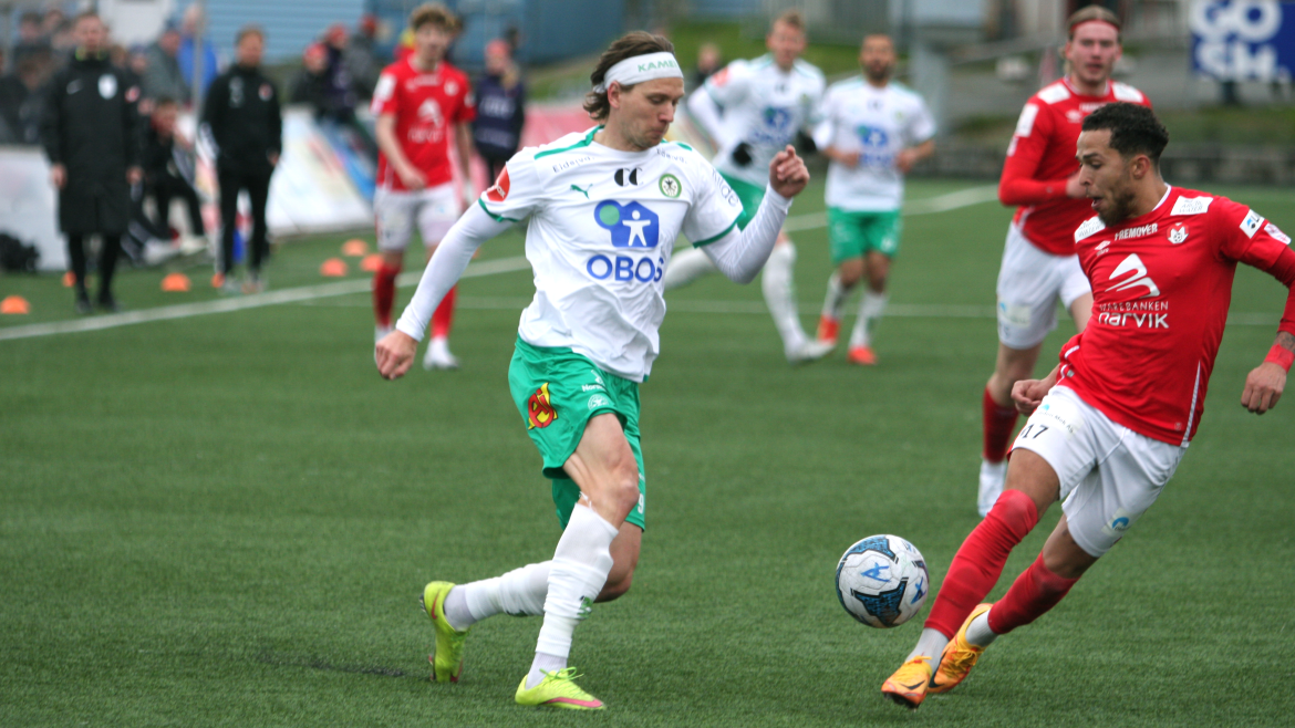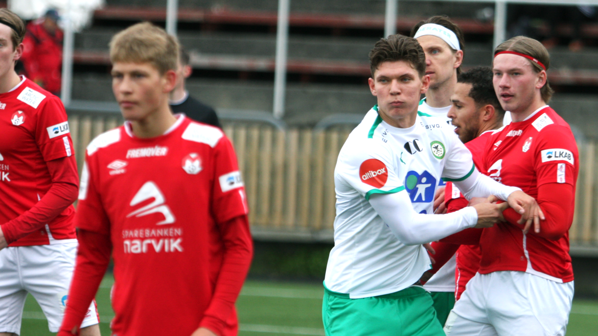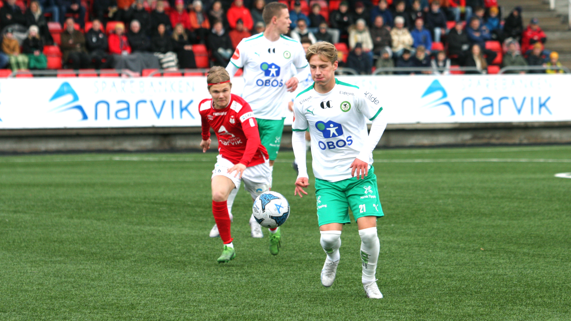 Jonas Enkerud fikk også med seg to pinner da han avslutter kveldens vakreste angrep. Etter klikkklakk-fotball ute på høyreside er Kristian Lønstad Onsrud toneangivende da han til slutt er ute ved krittet med keeper. Han triller ballen ut førtifem grader og inne ved femmeteren vinner Jonas Enkerud duellen mot sin oppasser og setter kveldens siste mål på Narvik stadion.