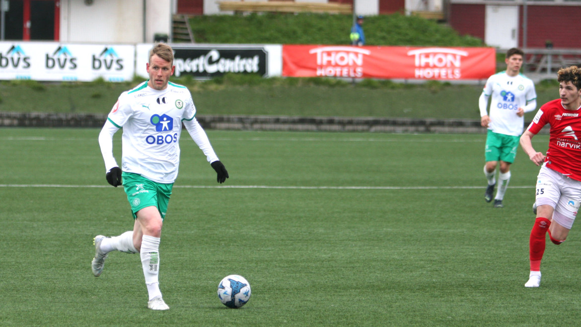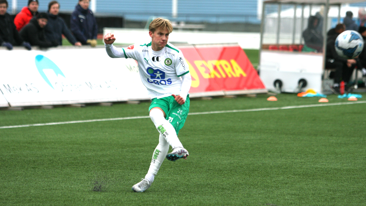 Som mot Nybergsund i første runde av NM måtte de gjestene grønnbuksene vente i overkant av tjue minutter før de fikk satt ballen over streken. Benjamin Thoresen Faraas mottar ballen fra Vegard Kongsro ute på venstresiden og drar seg innover før han skyter fra sekstenmeteren og via en fot før ballen finner veien i nærmeste hjørnet.