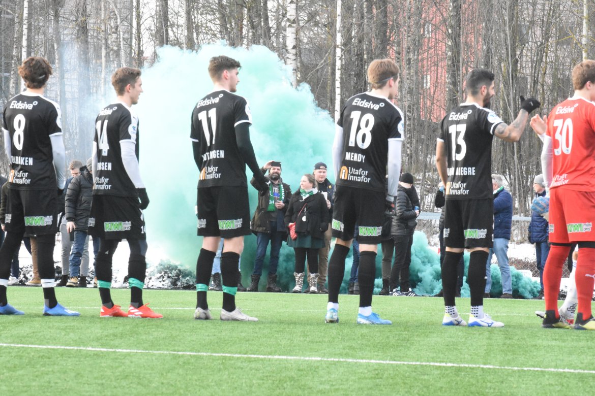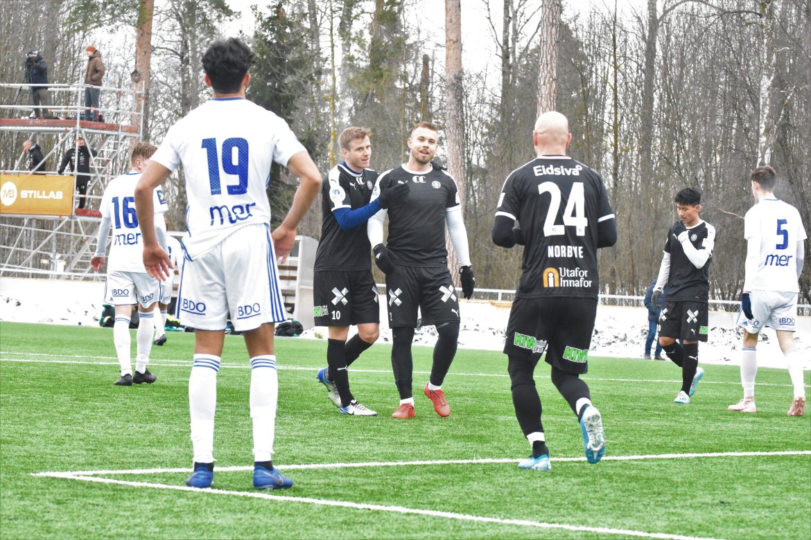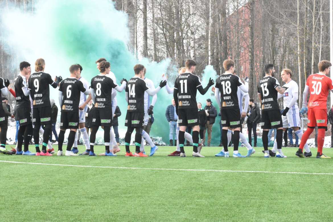 VIDEO/BILDEGALLERI: Marcus Pedersen takker Hans Norbye for den målgivende pasningen på det som ble dagens matchvinner mål. Hør hva hva Gaute Helstrup sier om dagens kamp og dagens mann, Ahmed Daghim: