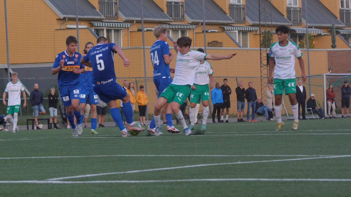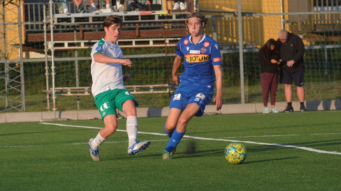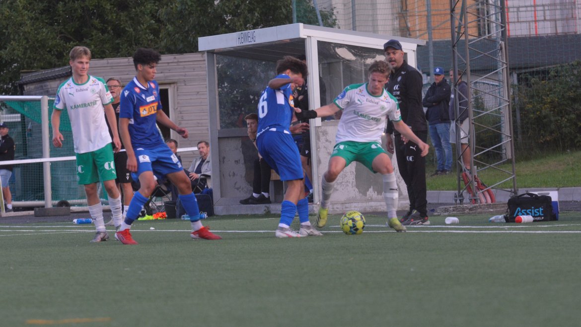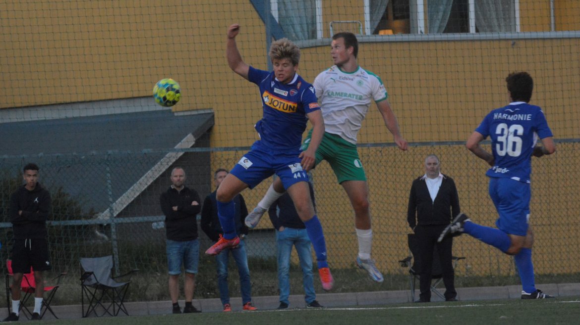 Det var to gode lag som spilte god fotball med et bra nivå og godt tempo allerede fra første spark på ballen. Etter ni minutter får hjemmelaget en dødball utenfor hjørnet av sekstenmeteren. Den curles over muren og inn i nærmeste hjørnet av Vetle Walle Egeli.