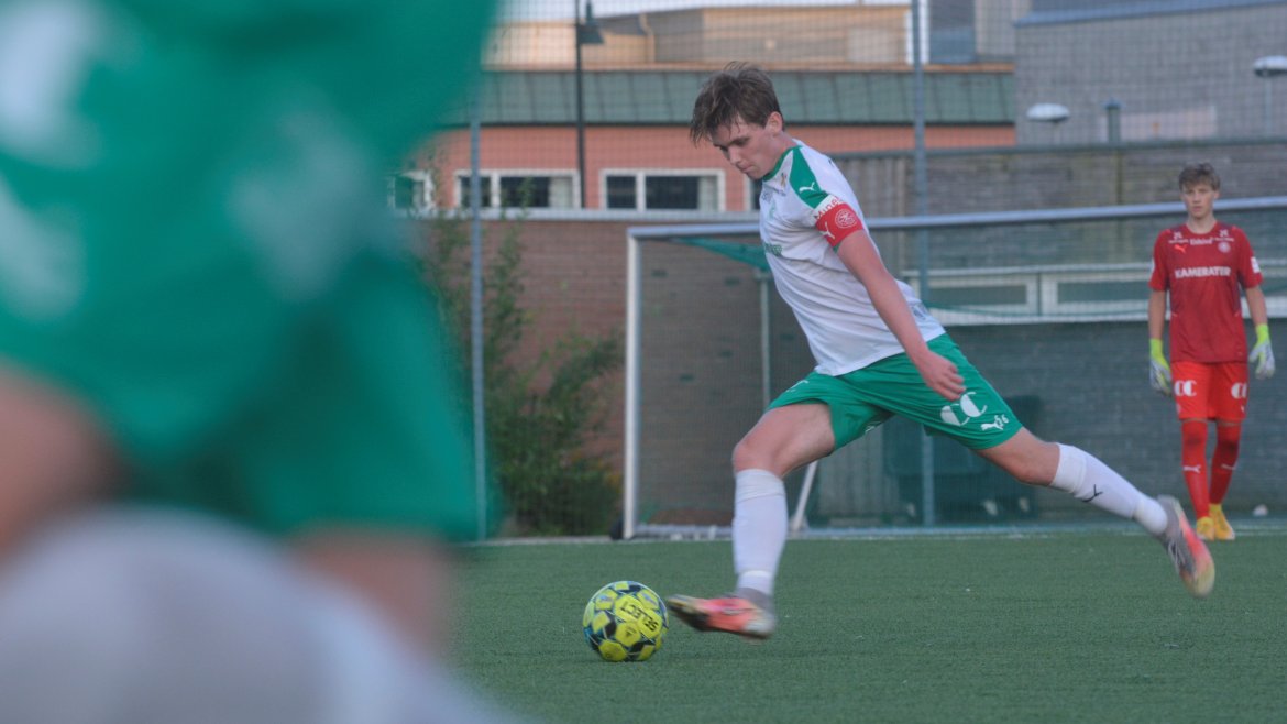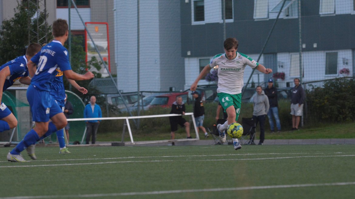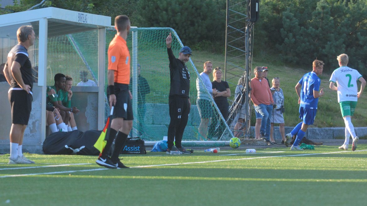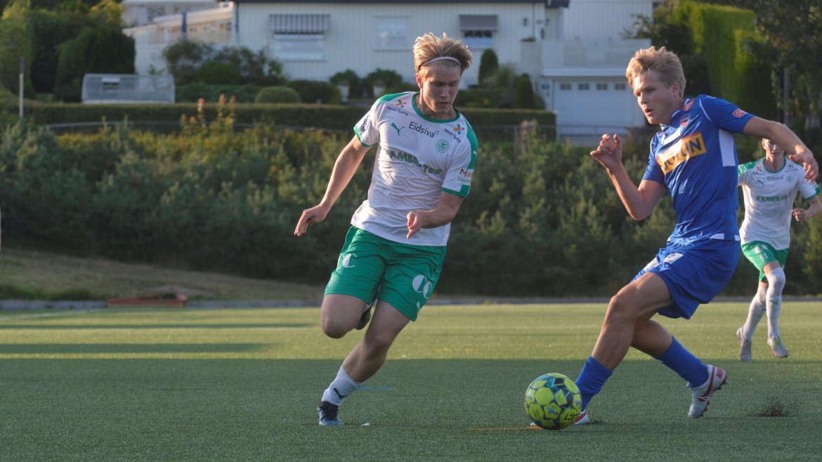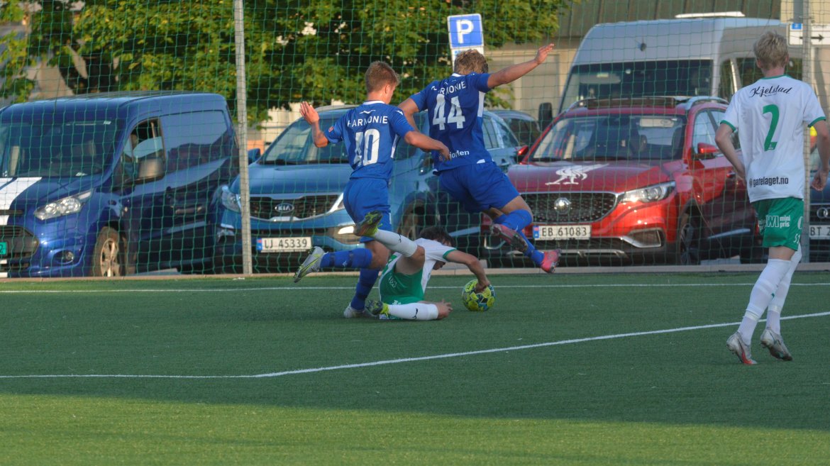 Det var to gode lag som spilte god fotball med et bra nivå og godt tempo allerede fra første spark på ballen. Etter ni minutter får hjemmelaget en dødball utenfor hjørnet av sekstenmeteren. Den curles over muren og inn i nærmeste hjørnet av Vetle Walle Egeli.