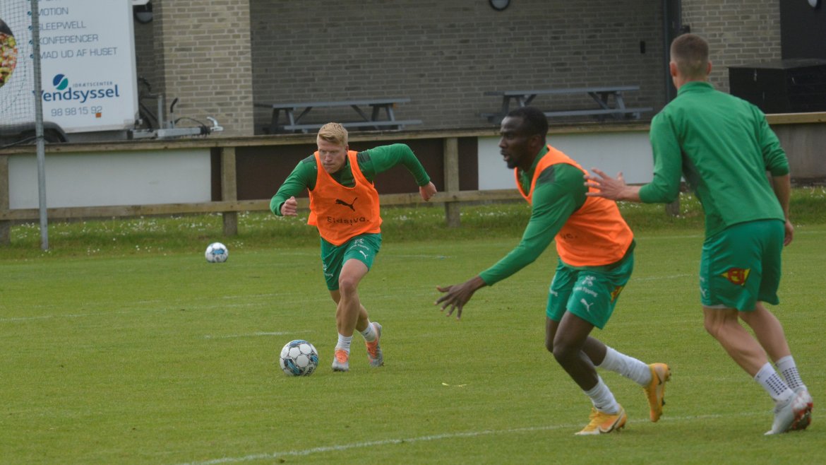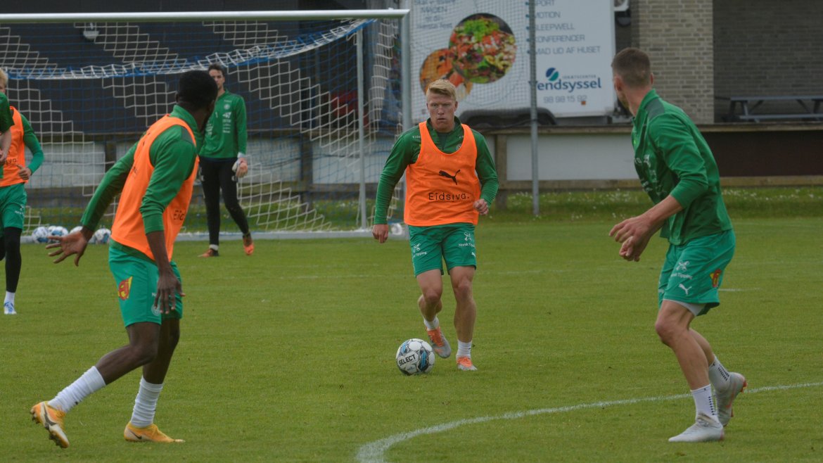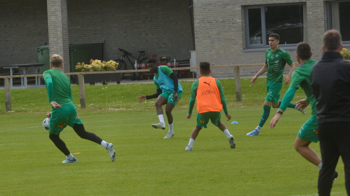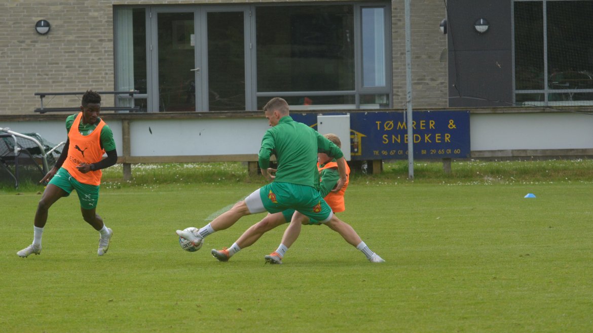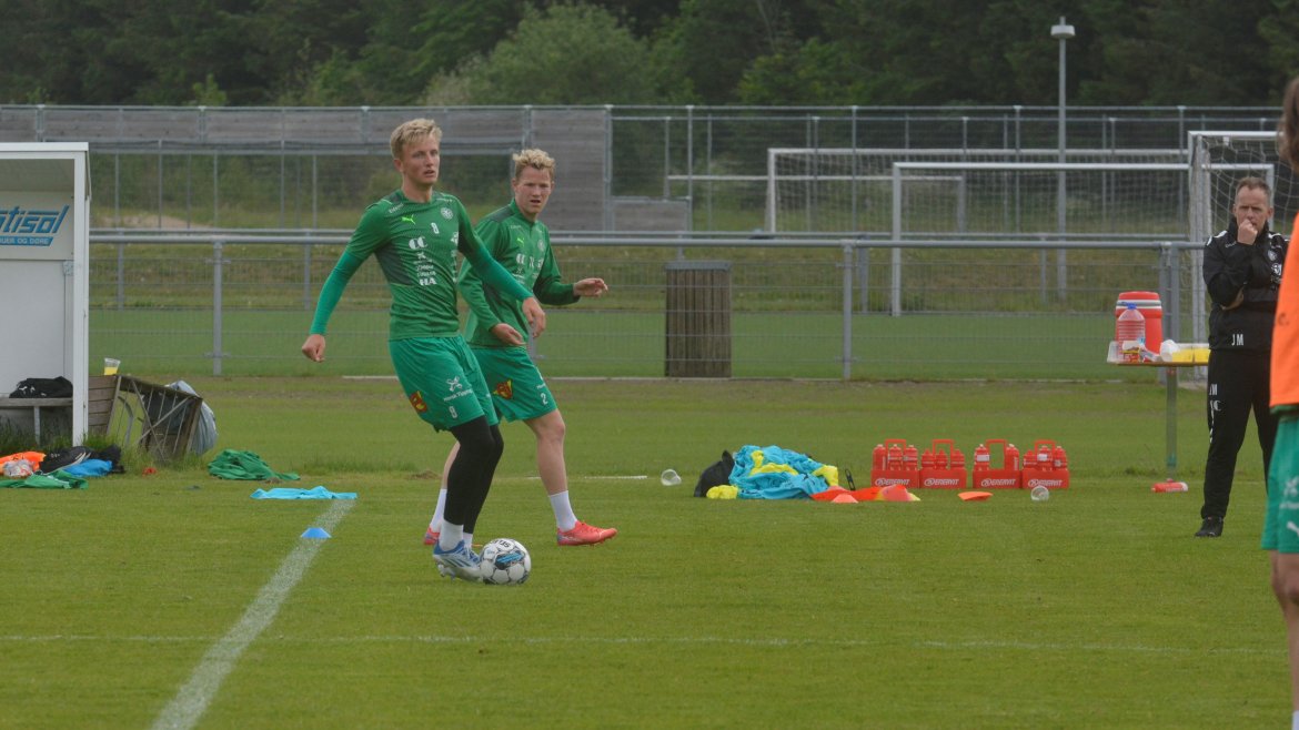 VIDEO/BILDEGALLERI: Onyeka Osemene (t.v) og Thomas Juel-Nielsen prøver seg på HamKam-trening denne uken. Hør hva Jakob Michelsen sier om det og denne ukens treningsleir: Herrelaget Video Bildegalleri