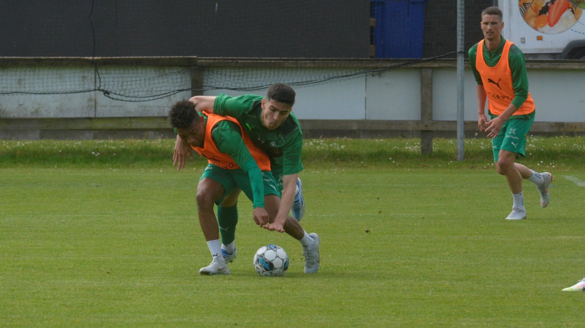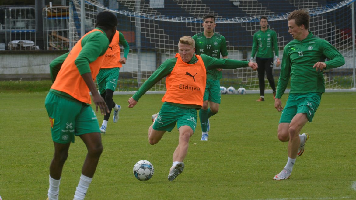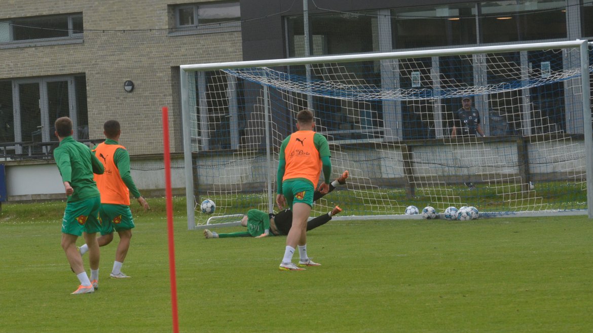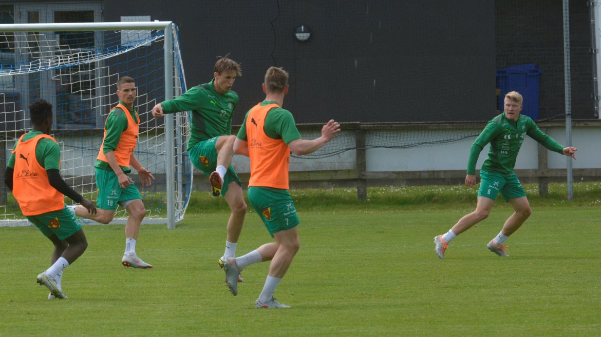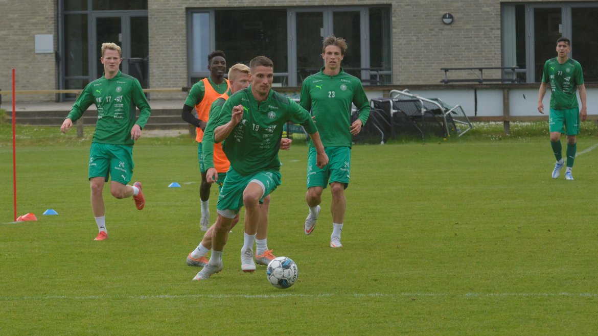 VIDEO/BILDEGALLERI: Onyeka Osemene (t.v) og Thomas Juel-Nielsen prøver seg på HamKam-trening denne uken. Hør hva Jakob Michelsen sier om det og denne ukens treningsleir: Herrelaget Video Bildegalleri