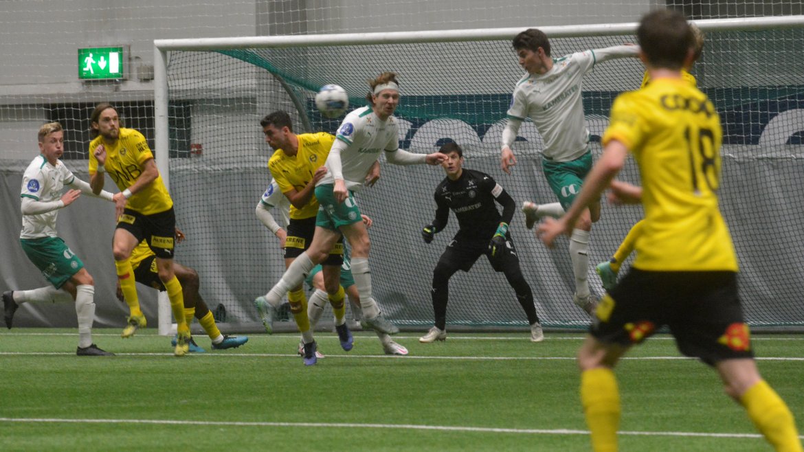 I starten av andre omgang fikk hjemmelaget tidlig uttelling etter heroisk innsats innenfor Kammas sekstenmeter. Til slutt havner en klarering ute hos Gjermund Åsen som banker ballen mot mål fra 16 meter.. Ballen finner veien mellom et par Kammaforsvarere og mellom beina på Nicholas Hagen i Kamma-buret.