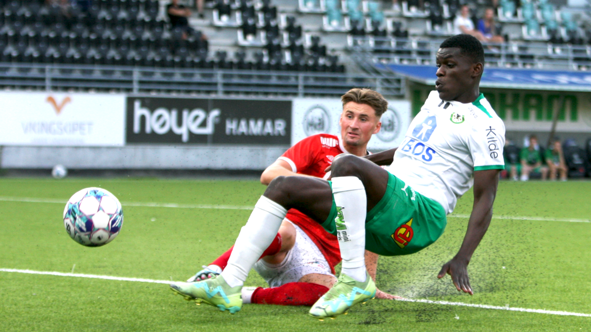 HamKam startet oppgjøret med to kjempesjanser til å ta ledelsen. Men skuddet fra Julian Gonstad ble reddet og avslutninga til Farzam Dadras snek seg på utsiden av lengste stolpe.