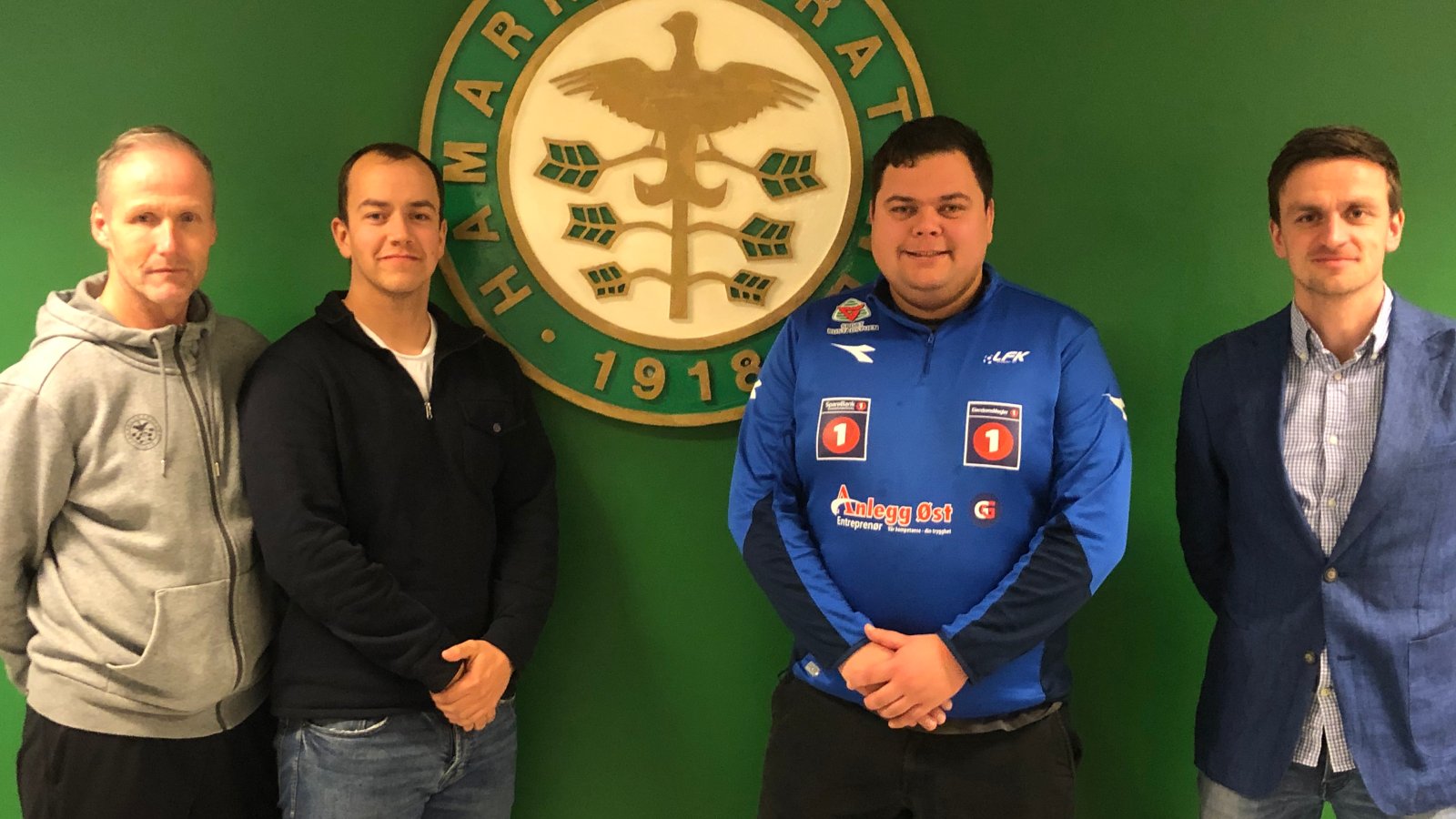 HamKam og Lillehammer FK inngår samarbeid. På bildet (fra venstre) ser vi: Rolf Høgmo (utviklingsansvarlig), Anders Engerud (daglig leder i HamKam yngres), Henrik Wangberg (sportslig ansvarlig for Lillehammer) og John Anders Rise (daglig leder i HamKam)