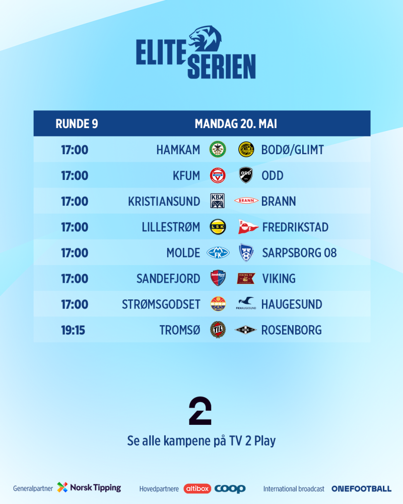 | Molde | - | Rosenborg | 11.mai | 18.00 |