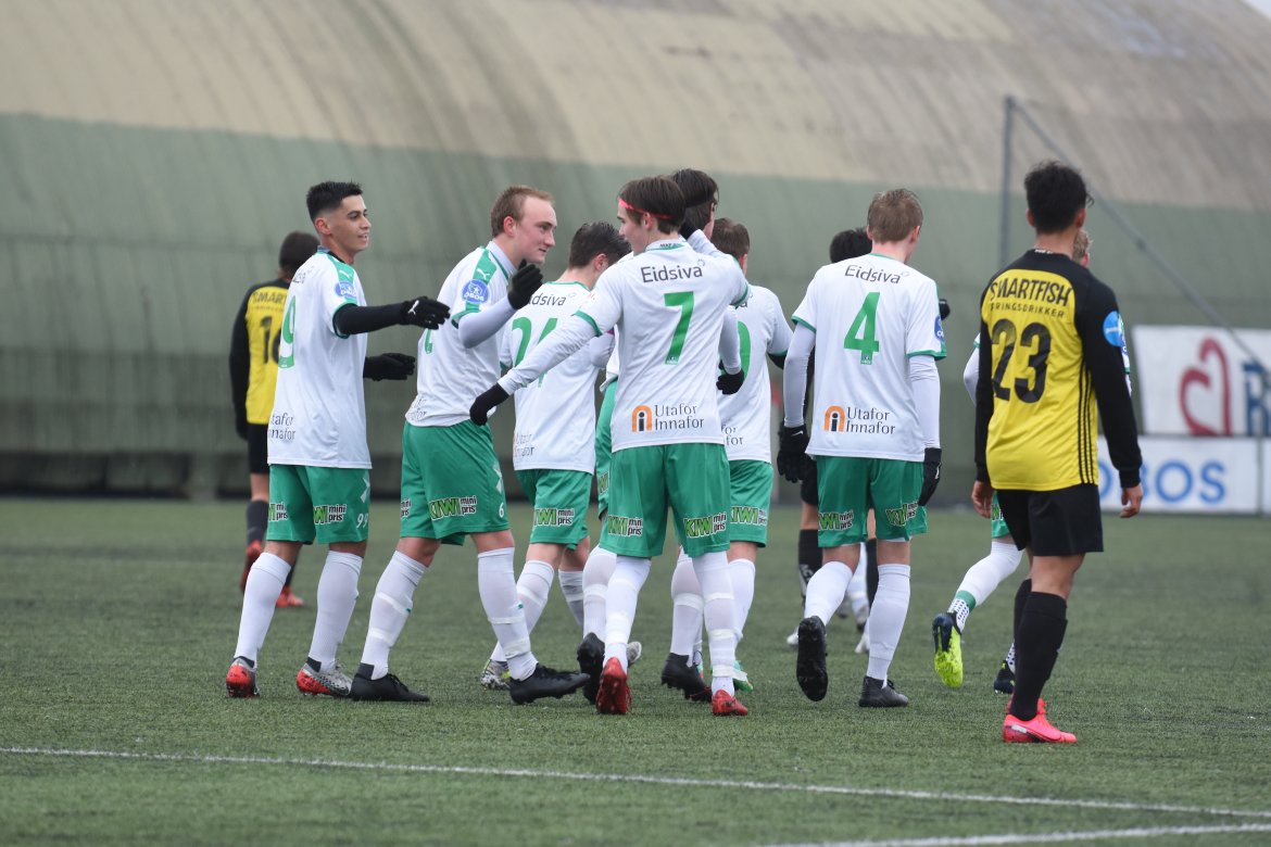 HamKam G19 (4-4-1-1); Petter Eichler Jensen (William Fraser, 46 min.) - Martin Hoel (Arne Westgaard, 46 min.), Martin Østlie Pettersen (Ole Martin Haugli, 46 min.), Olav Hermansen, Sondre Skogum (Ole-Magnus Kvernvolden, 46 min.) - Elias Munkelien (Theo Taouss Sveen, 46 min.), Thomas Borza, Mathias Bråthen (Mathias Hjemsæter, 46 min.), Jørgen Holmliund (Elias Munkelien, 85 min.) - Farzam Dadras - August Jenssen.