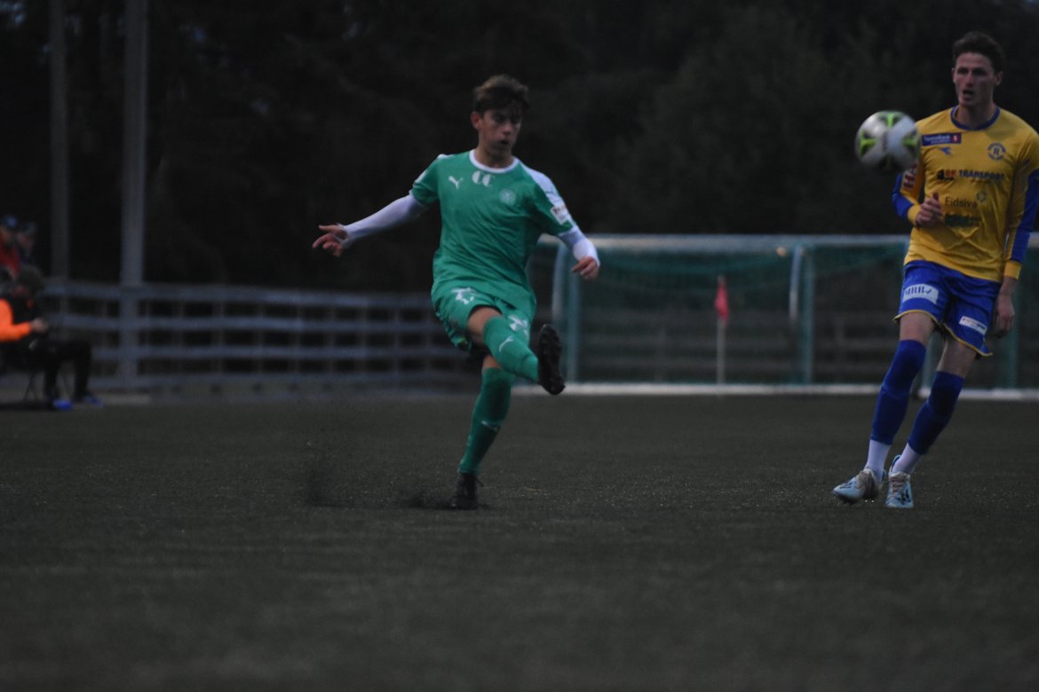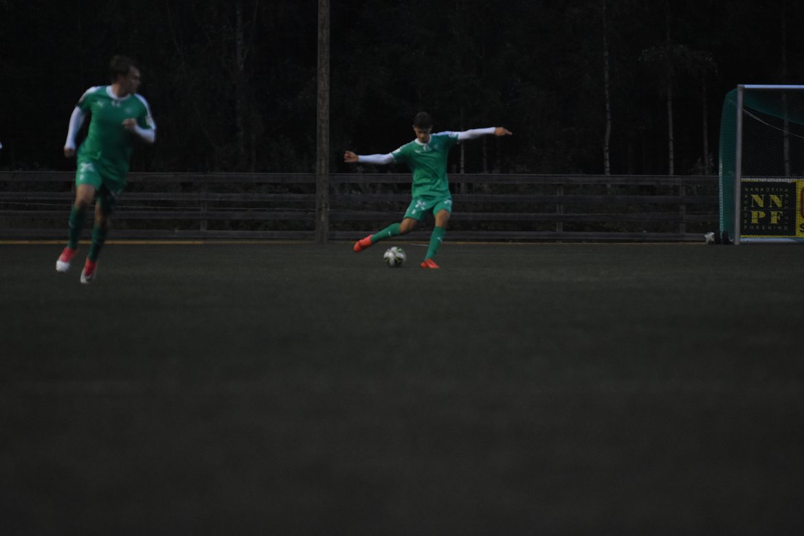Etter en lang periode med mye ballmiss og feilpasninger avslutter unggutta omgangen solid. Først setter Jørgen Holmlund sitt andre etter å ha kombinert med Andreas Strandlie. Jørgen kommer til slutt alene med keeper og avslutter med høyre fra åtte meter.
