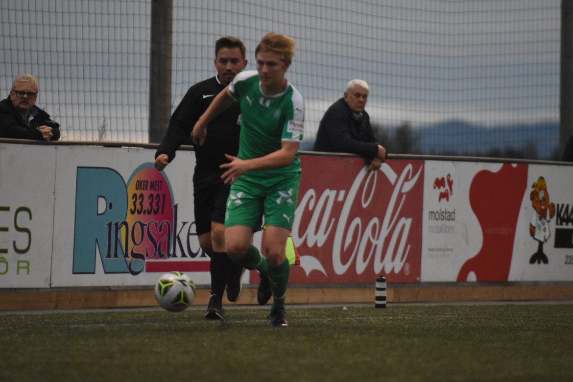 Et effektivt bortelag sørget for en solid firemålsledelse til pause og alle i troppen fikk prøve seg i Gaupen mandag kveld. De helgrønne HamKam-rekruttene fikk en god start på kampen da Andreas Strandlie slo et fltot innlegg fra høyresiden. Inne i feltet er det en duell bak keeper, Ken Robin Olsen hvor Sander Deglum og Jørgen Holmlund duellerer mot to Ringsaker-forsvarere. Sistnevnte er sist på ballen som triller over streken. Kort tid etter får Jarmund Øyen Kvernstuen gå og gå. Når han nærmer seg tyve meter smeller han ballen kontrollert nede i nærmeste hjørnet.