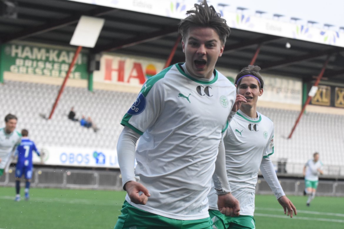 HamKam tok kommandoen fra første spark på ballen og fikk betalt på sin andre sjanse for dagen. Og da var det kun spilt tre minutter. Jarmund Øyen Kvernstuen og Jørgen Holmlund kombinerer flott på høyresiden før sistnevnte kommer alene med keeper. Holdet er skrått, og de fleste venter at brumunddølen skulle spille førtifem grader ut - inkludert keeper. Det betyr at Jørgen kunne sette ballen i korthjørnet, den griper han med begge hender og sørger for ledelse med en frekk avslutning.