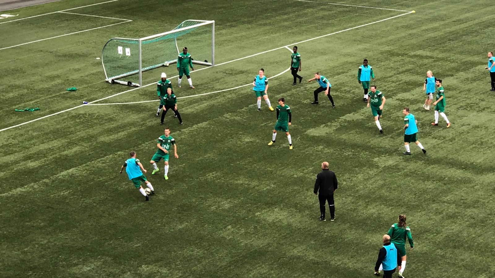 HamKam Gatelaget tar ikke hensyn til skoleruta, men trener to ganger i uka uansett. På tirsdagsøkta var det 20 spillere på trening, og for første gang var det så mange at det var mulig å spille kamp fra den ene 16-meteren til den andre.