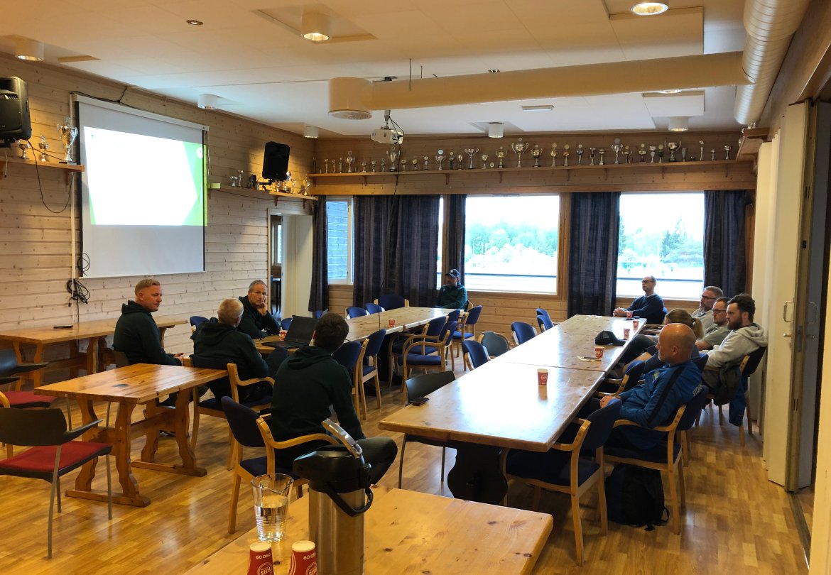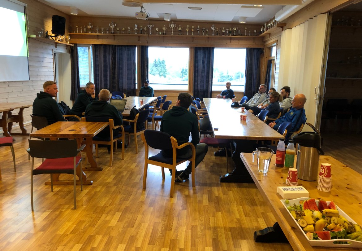 Etter en times trening var det trenerne sin tur til og møtes i klubbhuset til Storhamar. Med Rolf Høgmo i spissen var Gaute Helstrup, Espen Olsen, John Anders Rise og Chris Twiddy på plass for å dele sine erfaringer rundt spillerutvikling, klubbdrift og akademiklassifiseringa. Sammen med Storhamar-trenerne ble det stilt flere god spørsmål og det kom opp flere gode temaer fra begge sider av bordet.
