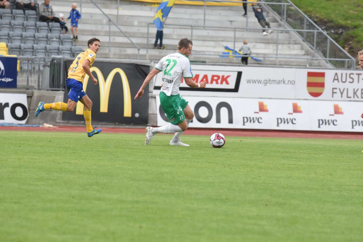 Jerv vinner 1-0 etter scoring av MIchael Baidoo i det sjette minutt. Det målet kom etter at bortelaget hadde startet godt og spilt seg til et par gode sjanser i feltet til Øystein Øvretveit. Etter målet er det Jerv som fører oppgjøret før bortelaget på ny tar kommando i kampen.