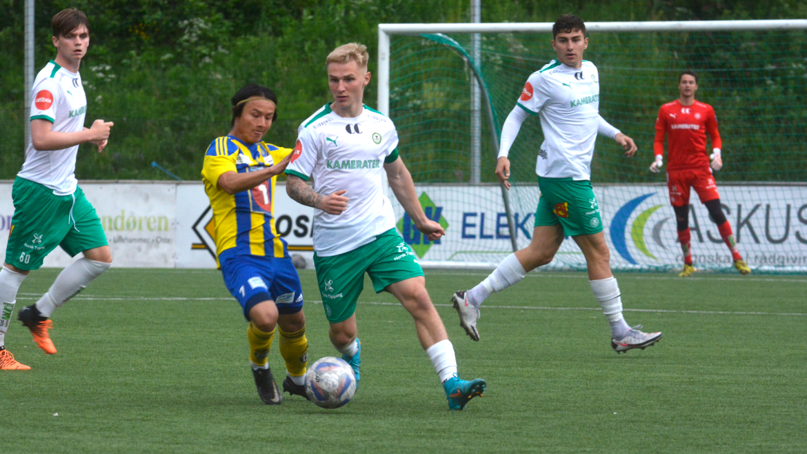 HamKam 2 (3-5-2); Lars Lassson Jendal - Kristoffer Ring Voldhagen, Fernan Faerron, Thorbjørn Kristiansen (Oskar Sangnes, 74 min.) - Clement Bayiha, Arne Hopland Ødegård (Farzam Dadras, 46 min.), Kobe Hernandez-Foster, Jonas Rasen, Eduards Daskevics - Benjamin Thoresen Faraas, Yuriy Yakovenko.