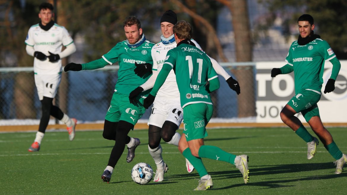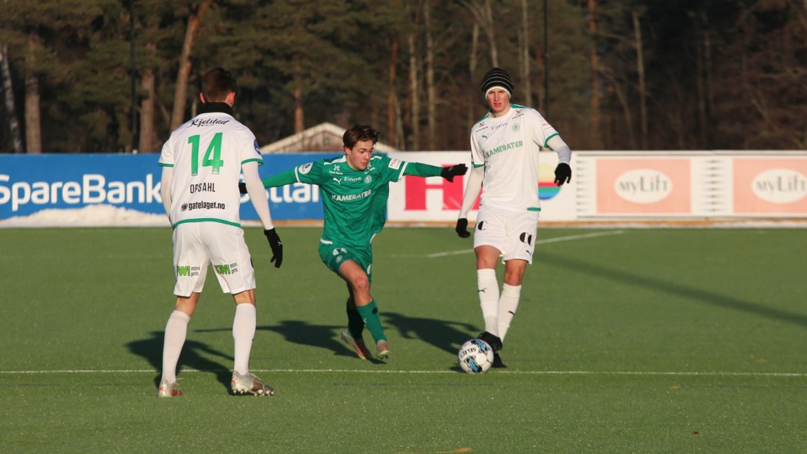 HamKam Grønn (4-4-1-1); Nicholas Hagen - Aleksander Melgalvis, Hasan Kurucay, Thorbjørn Kristiansen, Kobe Hernandez-Foster (Oskar Sangnes 30 min.) - Jonas Rasen, Morten Bjørlo, Niklas Rekdal, Emil Sildnes - Farzam Dadras - Jonas Enkerud.