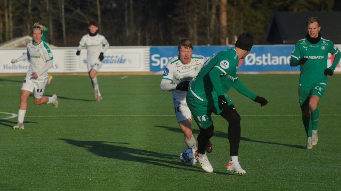 HamKam Hvit (3-5-2); Petter Eichler Jensen - Sam Rogers (Jibril Antala 30 min.), Halvor Rødølen Opsahl, Vetle Skjærvik (Magnus Nilsen 30 min.) - Jonathan (prøvespiller), Arne Hopland Ødegård, Fredrik Sjølstad, Kristian Eriksen, Eduards Daskevics - Benjamin Thoresen Faraas, Julian Gonstad.
