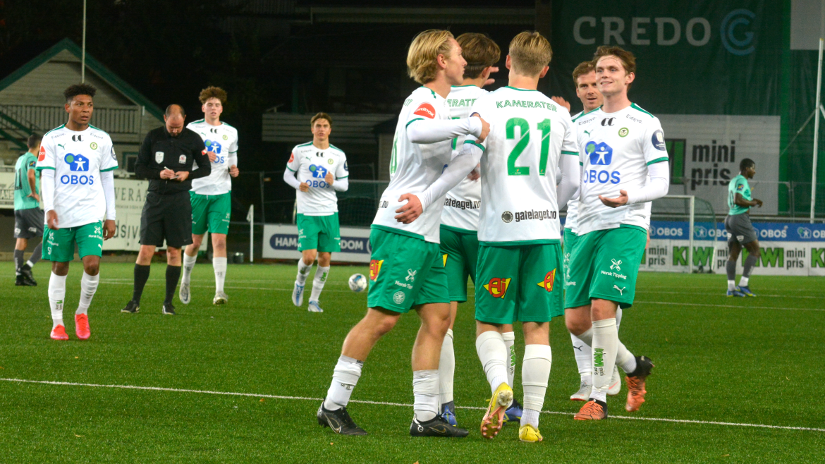 HamKam 2 (3-5-2); Lars Larsson Jendal - Oskar Sangnes, Kristoffer Ring Voldhagen, Thorbjørn Kristiansen - Clement Bayiha (Julian Gonstad 62), Arne Hopland Ødegård, Kobe Hernandez-Foster (Leo Haug Utkilen 69), Emil Sildnes (Enok Naustdal 62), Kristian Nordbye (Oskar Stenberg Øien 78) - Jonas Rasen, Benjamin Thoresen Faraas (Jesper Heggelund 69).