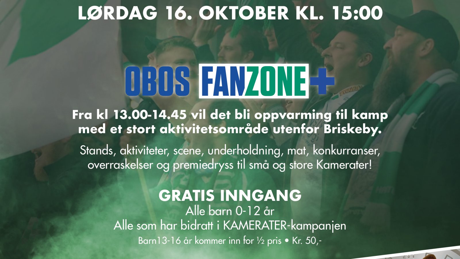 Fra kl 13.00 - 14.45, som en herlig oppvarming til kampen, vil vi ha Obos-Fanzone+ utenfor Briskeby ut mot Vangsvegen.
