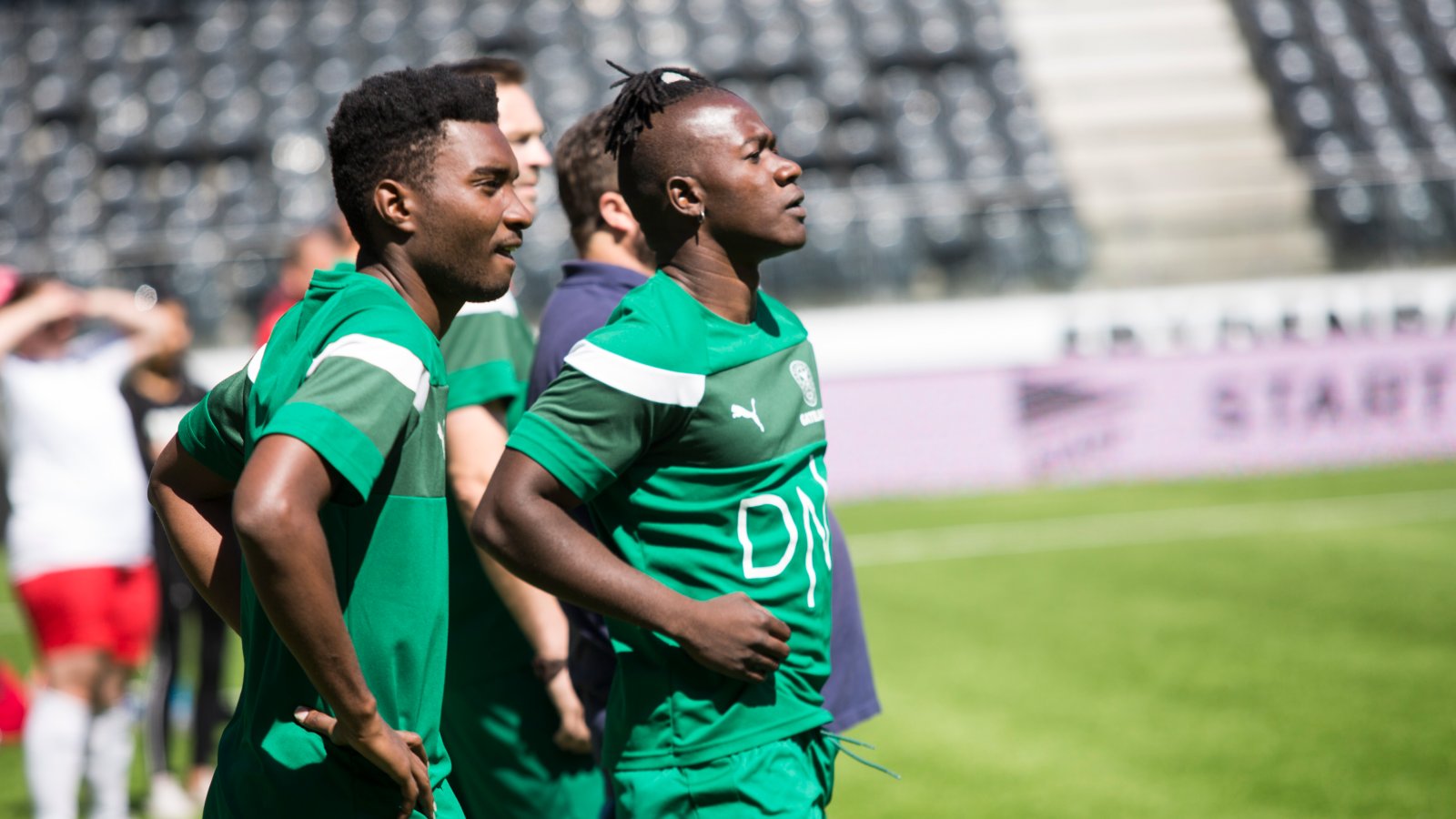 (HamKam Gatelaget - Vålerenga 3-5): Daffy (til venstre) og Toyi innser at slaget mot Vålerenga endte med et knepent tap. Heldigvis er det bare halvannen måned til laget skal spille turnering i Tønsberg. Gatelaget