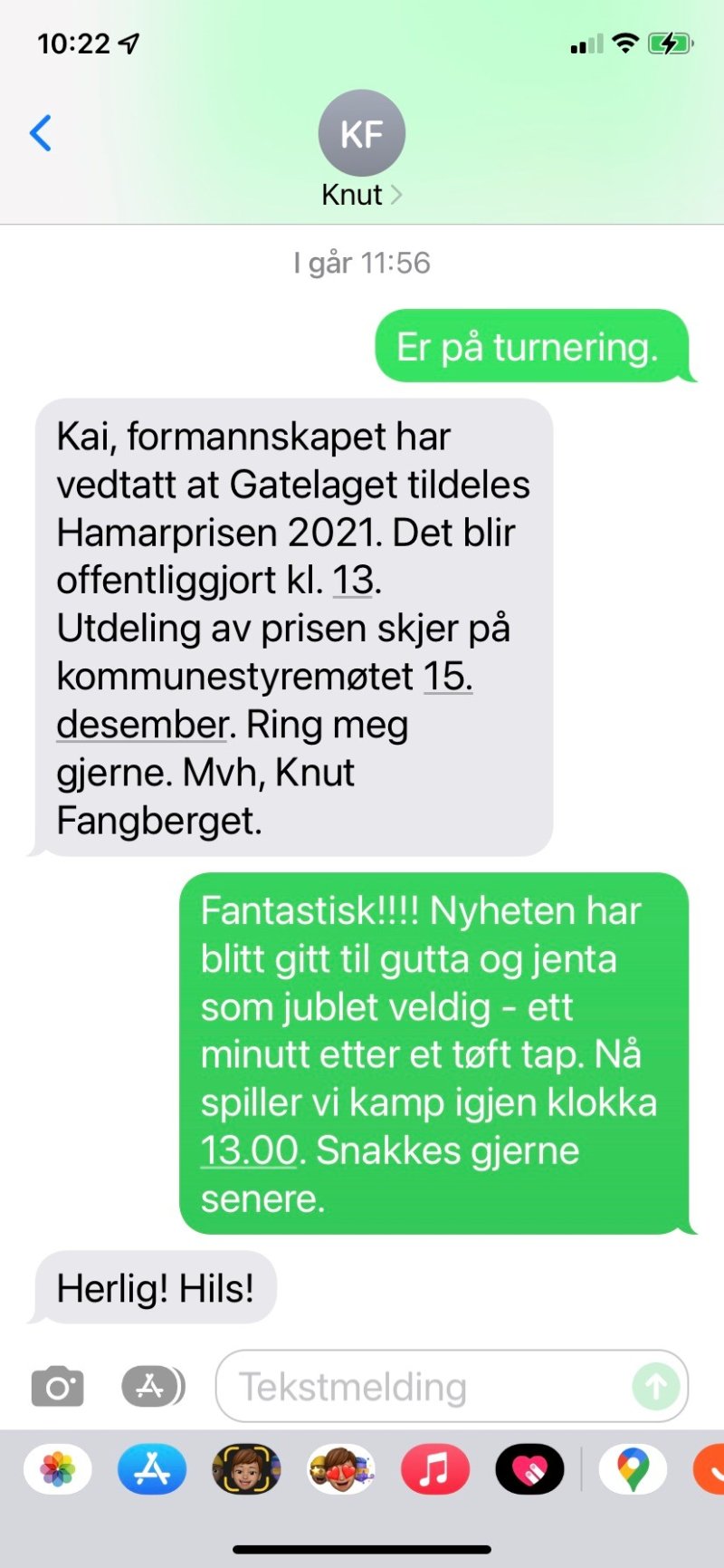 Midt under C-sluttspillet på Raufoss fikk Gatelaget til HamKam en SMS-beskjed absolutt ingen på laget hadde ventet: Formannskapet i Hamar kommune har vedtatt at Gatelaget tildeles Hamarprisen 2021. Gatelaget