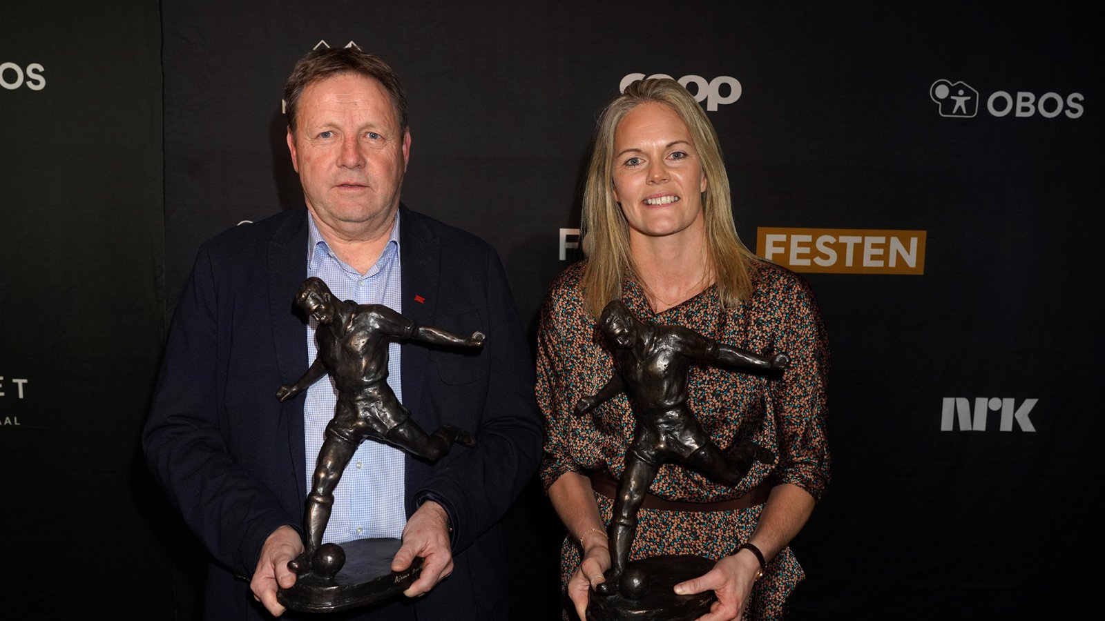 Tidligere landslagskeeper Ingrid Hjelmseth og Viking-trener Bjarne Berntsen er i kveld tildelt Kniksens hederspris. Duoen mottok prisen til stående applaus på Ullevaal stadion under Fotballfesten 2019, en sending som er et samarbeid mellom Norsk Toppfotball, Toppfotball Kvinner, Norges Fotballforbund og rettighetshaver Discovery.