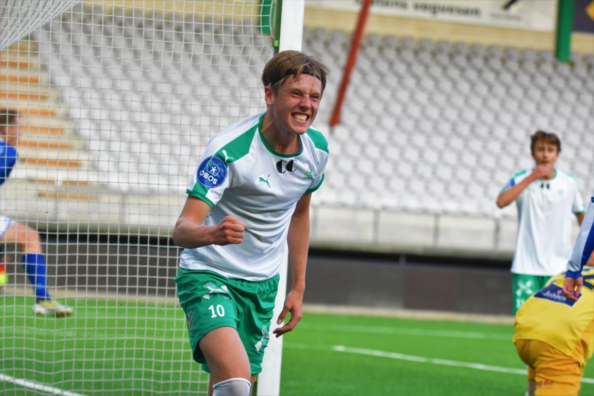 VIDEO/BILDEGALLERI: Jarmund Øyen Kvernstuen rakk å tegne seg på scoringslisten før han måtte ut med en smell i albuen etter 25 minutter. Hør status på målscoreren og hva hovedtrener Stig Holmen mener om dagens trepoenger: Rekruttlaget Bildegalleri Video