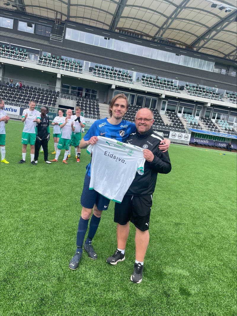 Før kampen mot Stabæk markerte hjemmelaget at Eirik nå fortsetter å ta gode valg som Stabæk-spiller. Etter flere sesonger i grønt og hvitt flytter midtbanespilleren nå hjem igjen og som et synlig bevis på at Eirik alltid vil være Kamerat, fikk har overrakt ei Kamma-trøye av trener Kai Kristiansen.