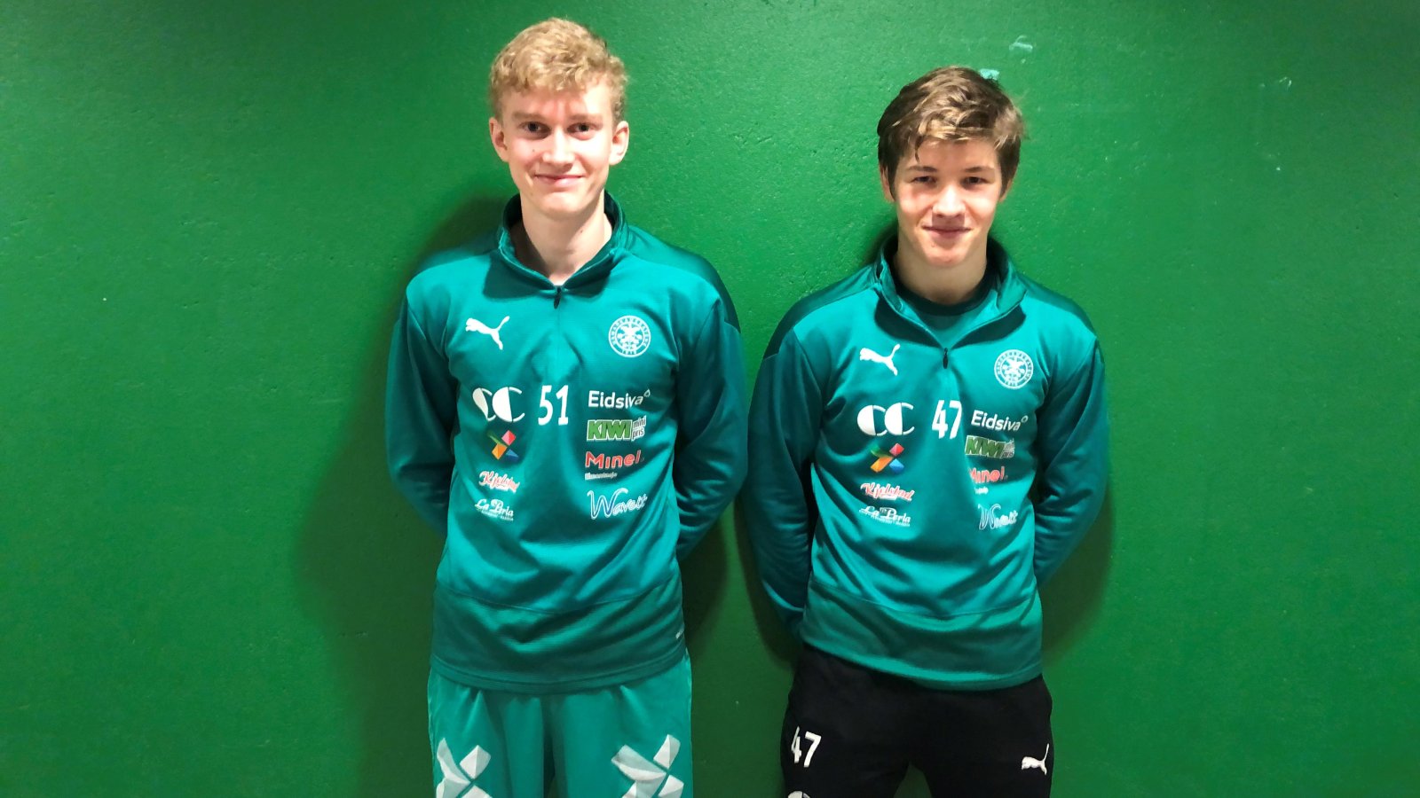 VIDEO: G19-spillerne Elias Munkelien (f.v) og Thomas Borza skal trene med a-laget frem til vinterferien. Hør hva dem synes om nivået på treningene: Herrelaget Video