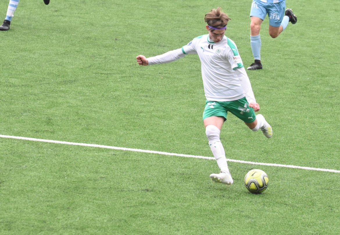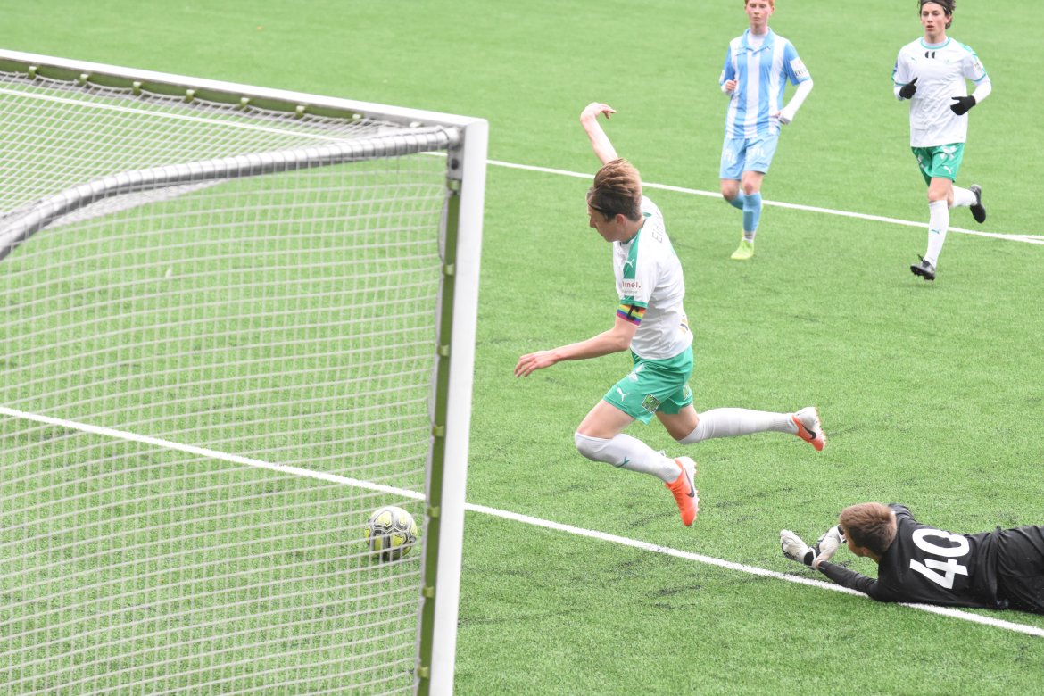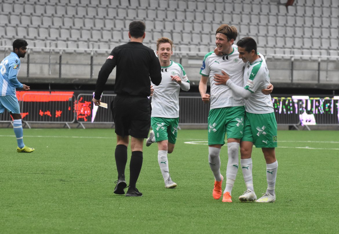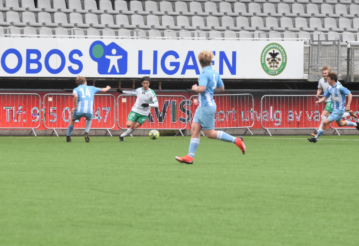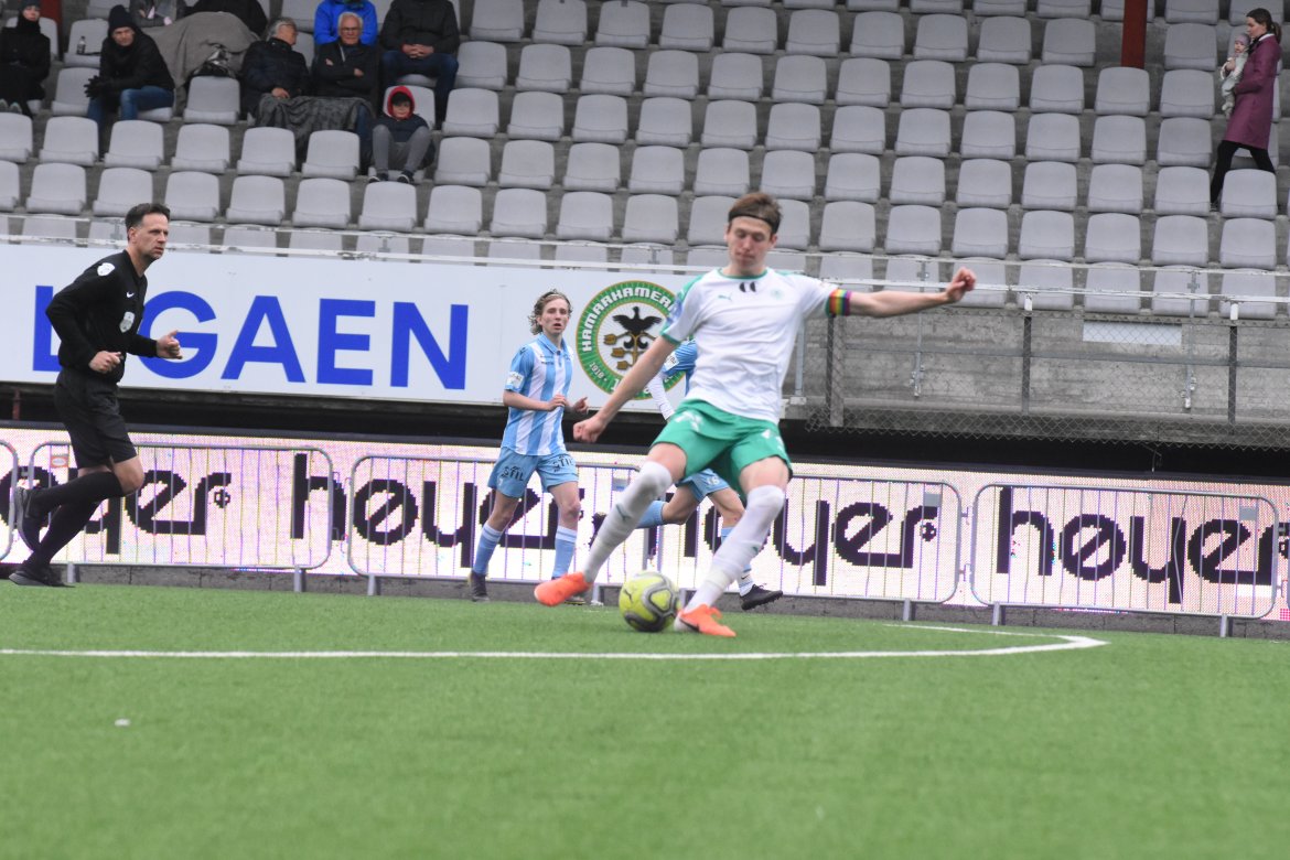 Jarmund Øyen Kvernstuen ville også være med på scoringsballet når han får ballen inne i seksten etter et godt skudd fra August Jenssen. Lomværen er iskald, runder keeper og setter ballen i det tomme buret. 3-0 før kvarteret spilt. Etter en halv time kommer Follo seg gjennom, og Markus Ottesen gjør ingen feil alene med Emil Benjaminsen i HamKam-buret og bortelaget reduserte.