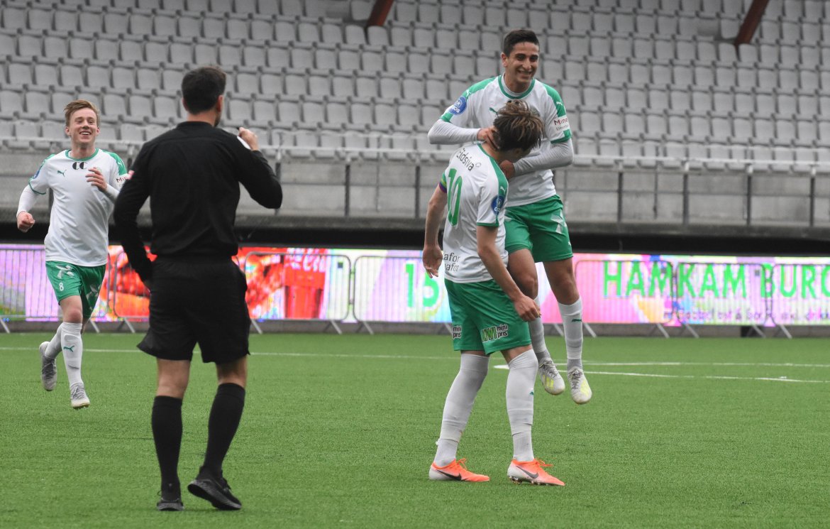 HamKams unggutter gikk ut i hundre og tok ledelsen 1-0 allerede før to minutter var spilt. Jarmund Øyen Kvernstuen bryter seg inn i sekstenmeteren og spiller ballen mellom et ryggende forsvar og keeper. Der kommer Andreas Strandlie fra sin høyre og bredsider inn kampens første mål.