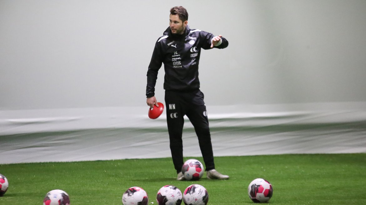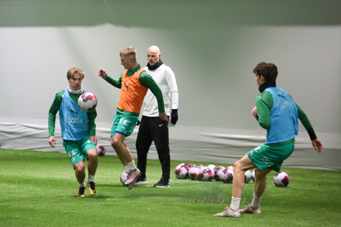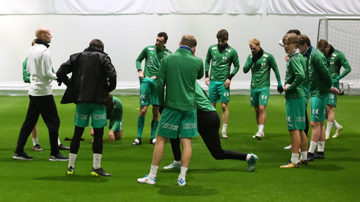 Fargene var de samme, men nytt av året var eliteseriespillerne og omgivelsene i den nye 2322-hallen. Etter en formidabel sesong i OBOS-ligaen skal de i år måle krefter mot det ypperste av norsk fotball. Hva passer da bedre enn at selveste landslagssjefen leder de første treningene. I påvente av ny hovedtrener hadde klubben behov for kompetent bistand og Ståle var ikke vanskelig å be.