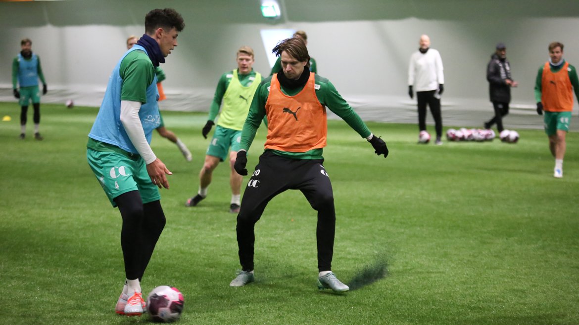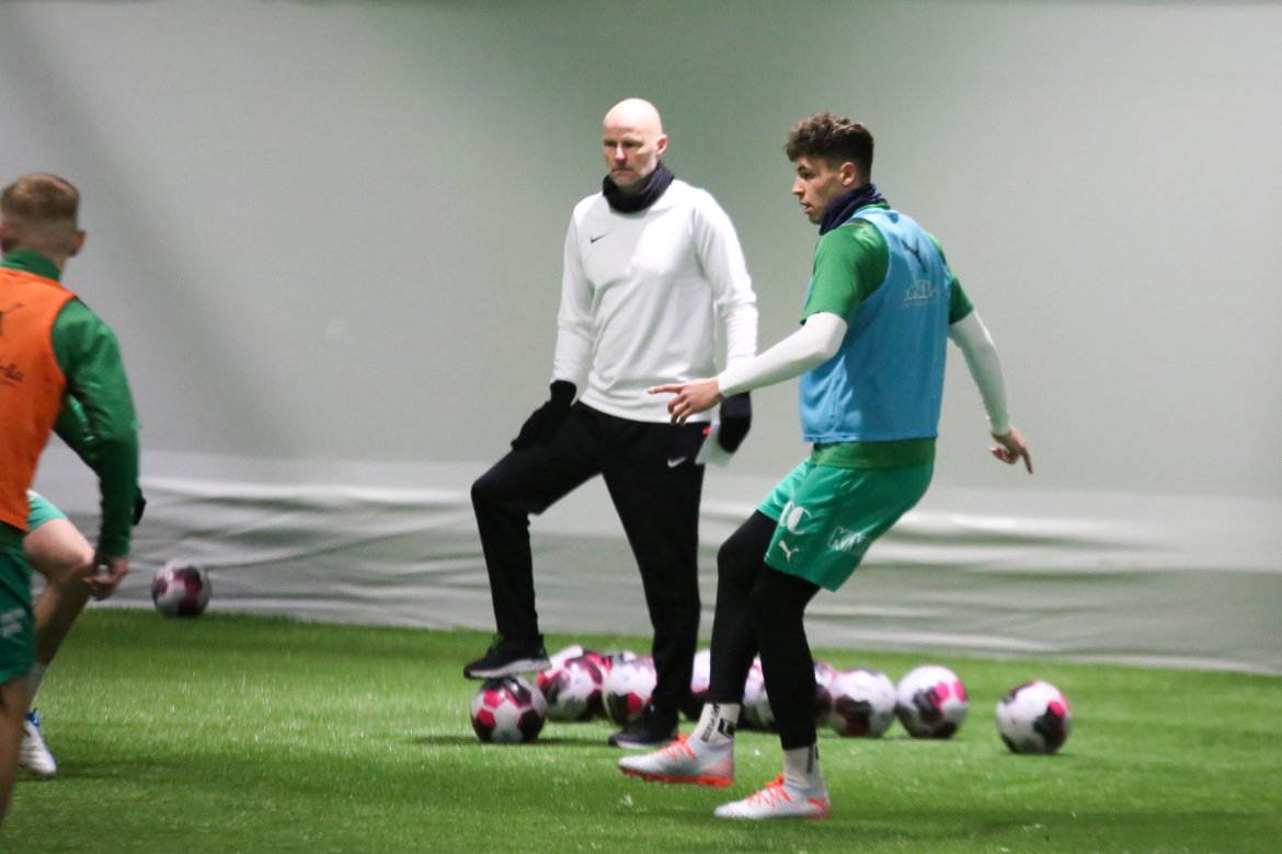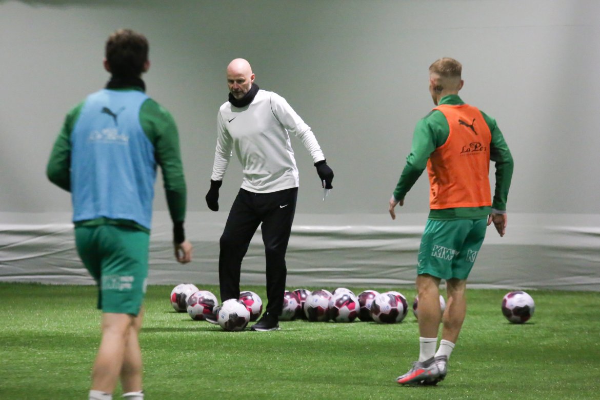 Ståle Solbakken ledet dagens trening og det var en meget motivert spillergruppe som viste seg frem i den nyåpnede hallen på Ridabu Herrelaget Video Bildegalleri