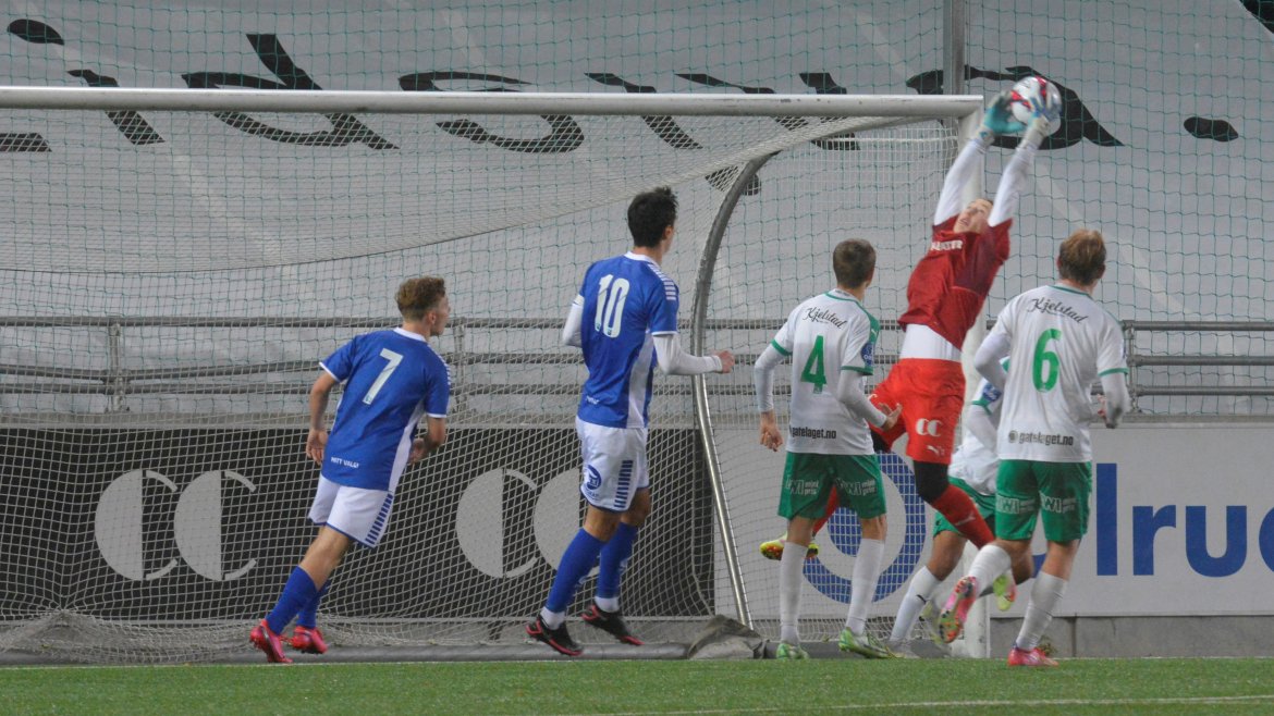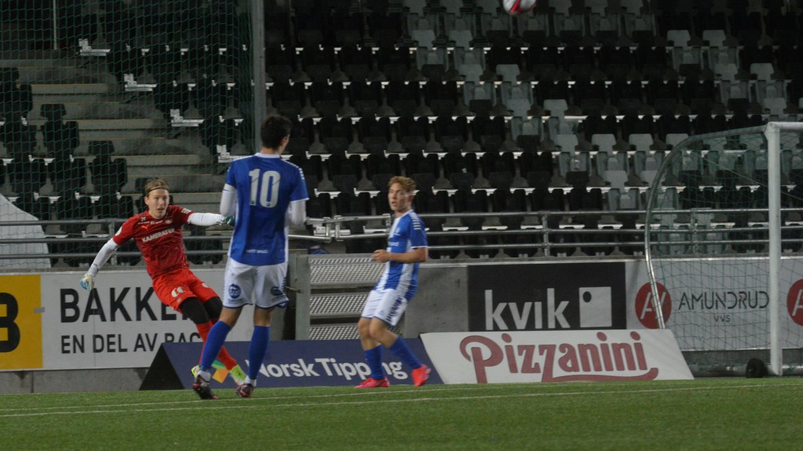 Rett før pause er Tobias Hummelvoll uheldig med en klarering, men gjør en strålende redning sekunder etterpå og sørger for at hjemmelaget leder 1-0 til pause.