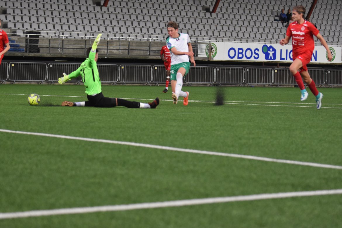 Fem minutter etter pause får rekruttene drømmeåpning når Van Za Lian Bawi Hrin bryter ballen høyt og kommer alene med keeper.unggutten er uselvisk og serverer Jean Alassane Mendy ballen som tar et touch før han kontrollerer ballen i lengste hjørnet.