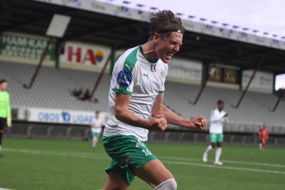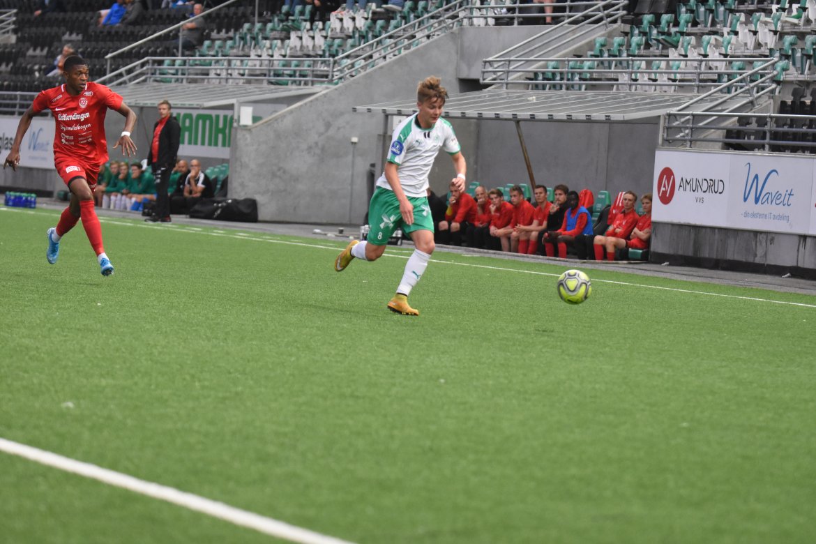 VIDEO/BILDEGALLERI: Jarmund Øyen Kvernstuen (bildet) med sine to mål og Jean Alassane Mendy med sitt ene skaffet HamKam-rekruttene et god utgangspunkt. Det endte med poengdeling mot serielederne: Rekruttlaget Video Bildegalleri