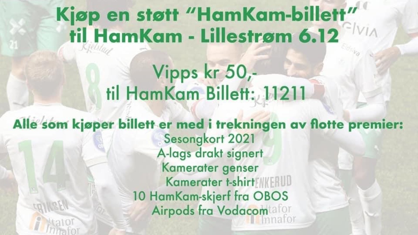 Vinnerene fra alle bidragsyterne fra "støtt HamKam-billett" er trukket. Oversikt finner du her: Herrelaget