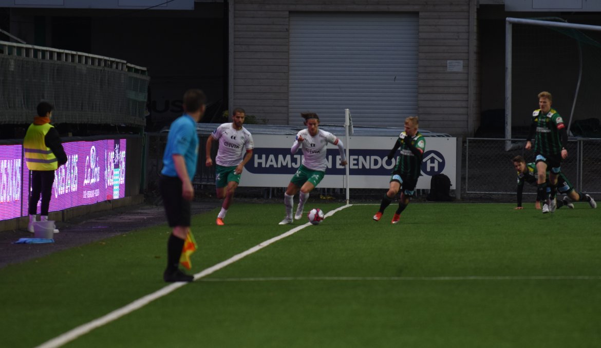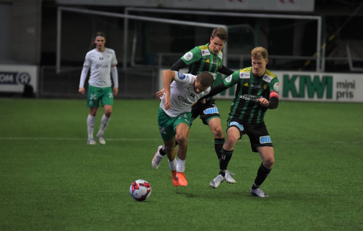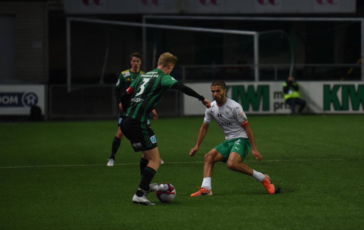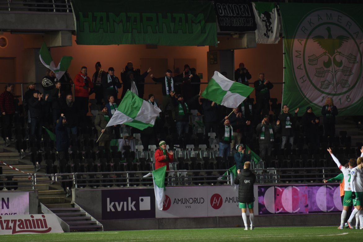 HamKam (3-4-3); Serigne Mor Mbaye - Jesper Taaje, Steinar Strømnes, Rubén Alegre Guerra - Amin Nouri, Markus Solbakken (Adeleke Akinyemi, 86 min.), Kristian Lønstad Onsrud, Jo Nymo Matland Kristian Strande (80 min.) - Kristian Eriksen (Jarmund Øyen Kvernstuen, 86 min.), Marcus Pedersen (Jonas Enkerud, 80 min.), Moses Ebiye (Emil Sildnes, 71 min.).