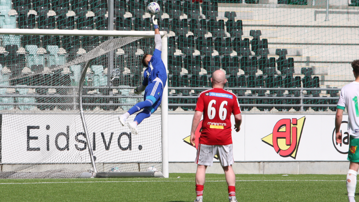 Denne gangen er det Ole Marius Jørgensen som får muligheten til å sette ballen i åpent mål og grep den med begge hender når han bredsidet ballen i det åpne buret.