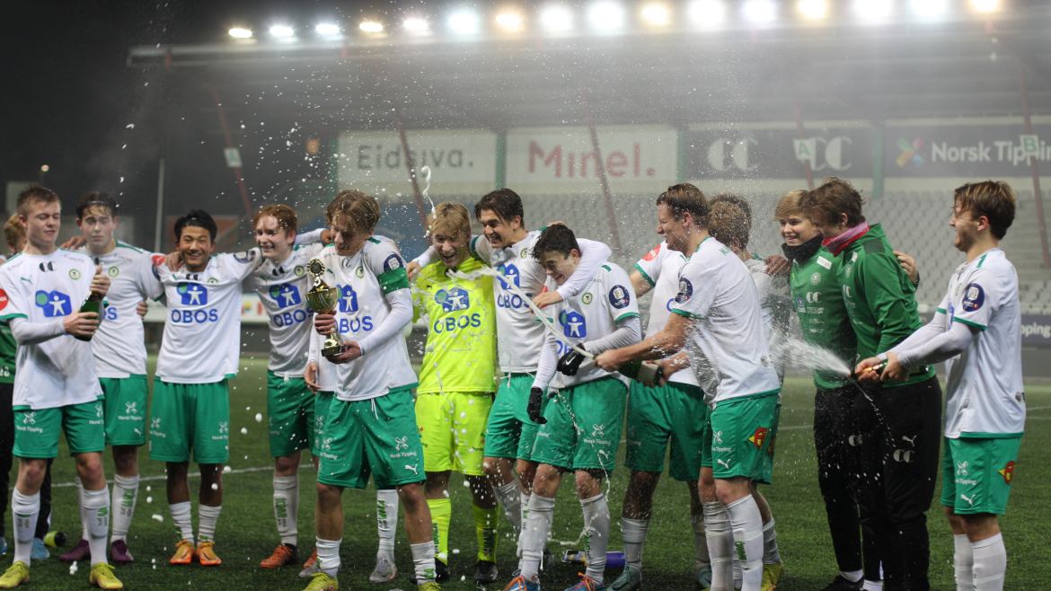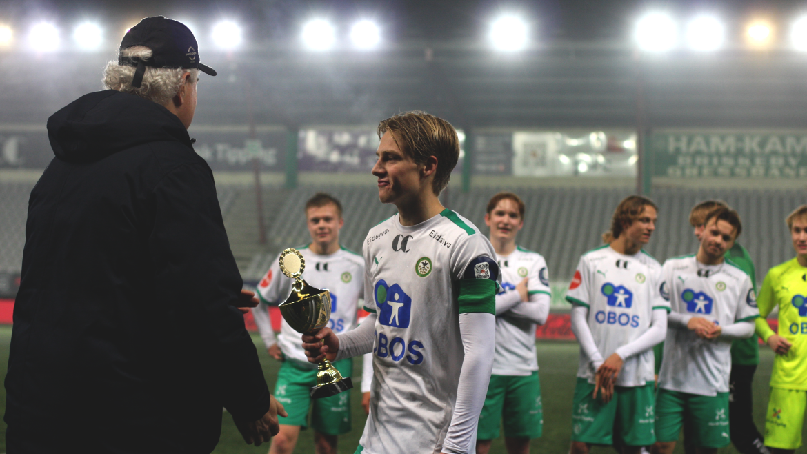 VIDEO: HamKams unge rekruttlag kjempet godt i 90 minutter og ledet lenge. Bortelaget utliknet syv minutter før slutt. Etter kampen fikk laget det synlige beviset på at de har vunnet årets 4. divisjonsavdeling og rykket opp et hakk: Rekruttlaget Video Bildegalleri